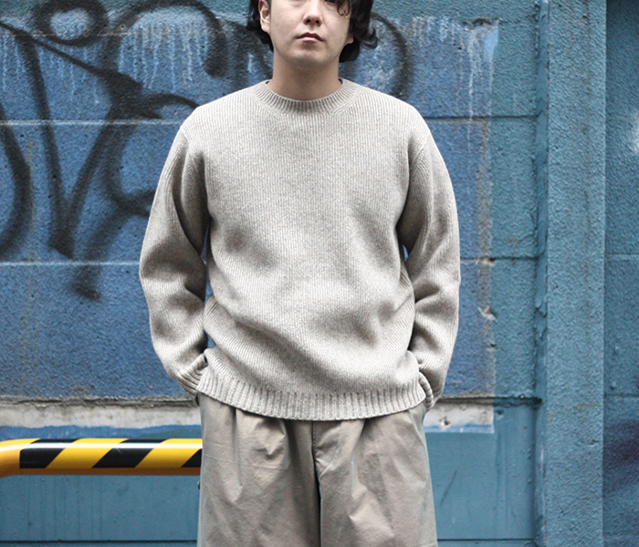 名だたるブランドのニットを少量生産で請け負う、数少ないニッターに数量限定で生産を依頼。糸はオーストラリア東部ニューサウスウェールズ州の原糸を国内に仕入れ、家族経営の小さな紡績工場で丁寧に作られたものを使用。オーストラリア産の中でも最も上質なサクソン血統のメリノ種であり、寒暖差が激しい地方で育つため、白度、クリンプ、繊度ともに優れています。