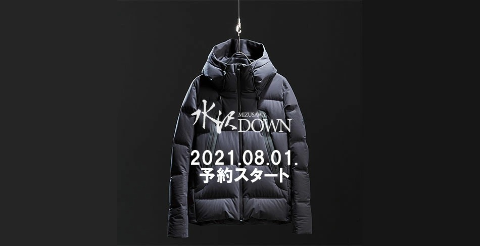 水沢ダウンの特徴でもある、熱接着ノンキルト加工により極限までステッチを省略、必要な部分にはシームテープ加工を施し、ダウンの弱点とされてきた、水分含浸を防ぎ、高い耐水性を実現。表地には4WAYストレッチ素材であるDERMIZAX MICRO STRETCH(ダーミザックスマイクロストレッチ)を採用し、どんな動きにも対応する快適さを提案。さらに裏地には光を熱へと変換し積極的な保温性能を発揮するHEAT NAVI(ヒートナビ)を採用、保温性も十分に確保した。また、本作の特徴でもある雨や雪など悪天候下での着用も考慮した、パラフードシステムを搭載。これはジップでフードの内側の袋を閉じる事ができるシステムで、フードに雪や雨などがたまるのを防いでくれる。通常時はジップを開いて深めなフードとして使用できる。裏面スソ付近に配されたパウダースカートも雪などがスソから入ってくるのを防いでくれる。