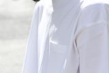 イタリアのクラシックなスラックスをベースに、ドレススラックス専業工場が限界値とした深い放射状のアウトタックをいれることで、腰回りにボリュームを持たせたツータックのワイドスラックスです。持ち出しには本水牛ボタン、両サイドのベルト部分には尾錠を採用しています。ブランドロゴ入りのオリジナルマーベルト仕様です。 ハイウェストでも腰を少し落としても穿けるサイズ感で作ってあります、ハイウェストで穿く時は、少し余裕が出るのでベルトを締めて穿くのがオススメです。