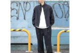 「ウールギャバジンの神様」と名高い尾州の毛織メーカーの代表作とも言えるウールギャバ ジンを使用。高密度に織り上げたウール生地に特殊な含浸加工を施すことで、他にはない カリカリとした手触りを実現しています。「リアルブラック」とも言える深い黒色も、同社が得意とする表現です。