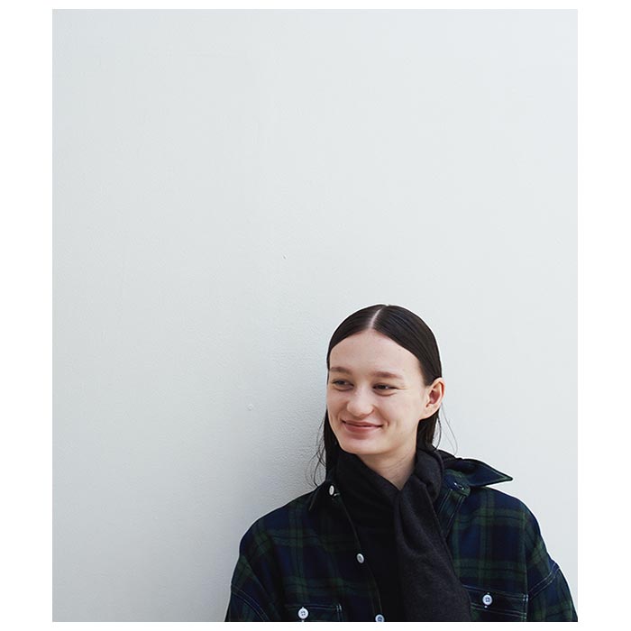 LVMHのデッドストックコレクションからピックアップした日本製のダブルフェイスウール&アルパカ生地。しっかりと目を詰めて織り上げた重量感のある生地に起毛をかけることでさらにボリュームを持たせつつ、ふわふわとし た毛並みも表現しています。衿裏、フラップ裏に使用したレザーは世界有数のレザー産地のタンナーに直接依頼したベジタブルタンニンのシープスキン。シープならではのキメの細 かいスムーズな質感を生かし、しっとりとした光沢感を表現しました。