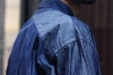 少し色の浅いピュアインディゴでロープ染色した米綿のナチュラルなムラ糸を使用して織り上げた9.5ozデニム 。ヨコ色をグレーで打ち込みインディゴブルーの色味に深みを持たせています。毛焼きをあえて省いた生機のような表情が特徴です。