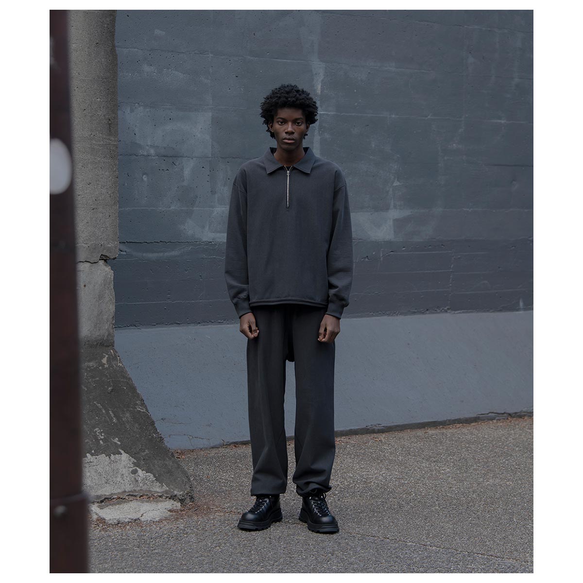 首元や裾リブがカットされていたビンテージのスウェットシャツから着想した断ち切り風の仕様と、前後で違いのある変則的な袖付けが特徴的なハーフジッププルオーバー。 程よくルーズでモダンなフィットは自然に体に馴染むストレスフリーな着心地。着丈・身幅ともによりコンパクトになり、すっきりとした印象にアップデートしています。