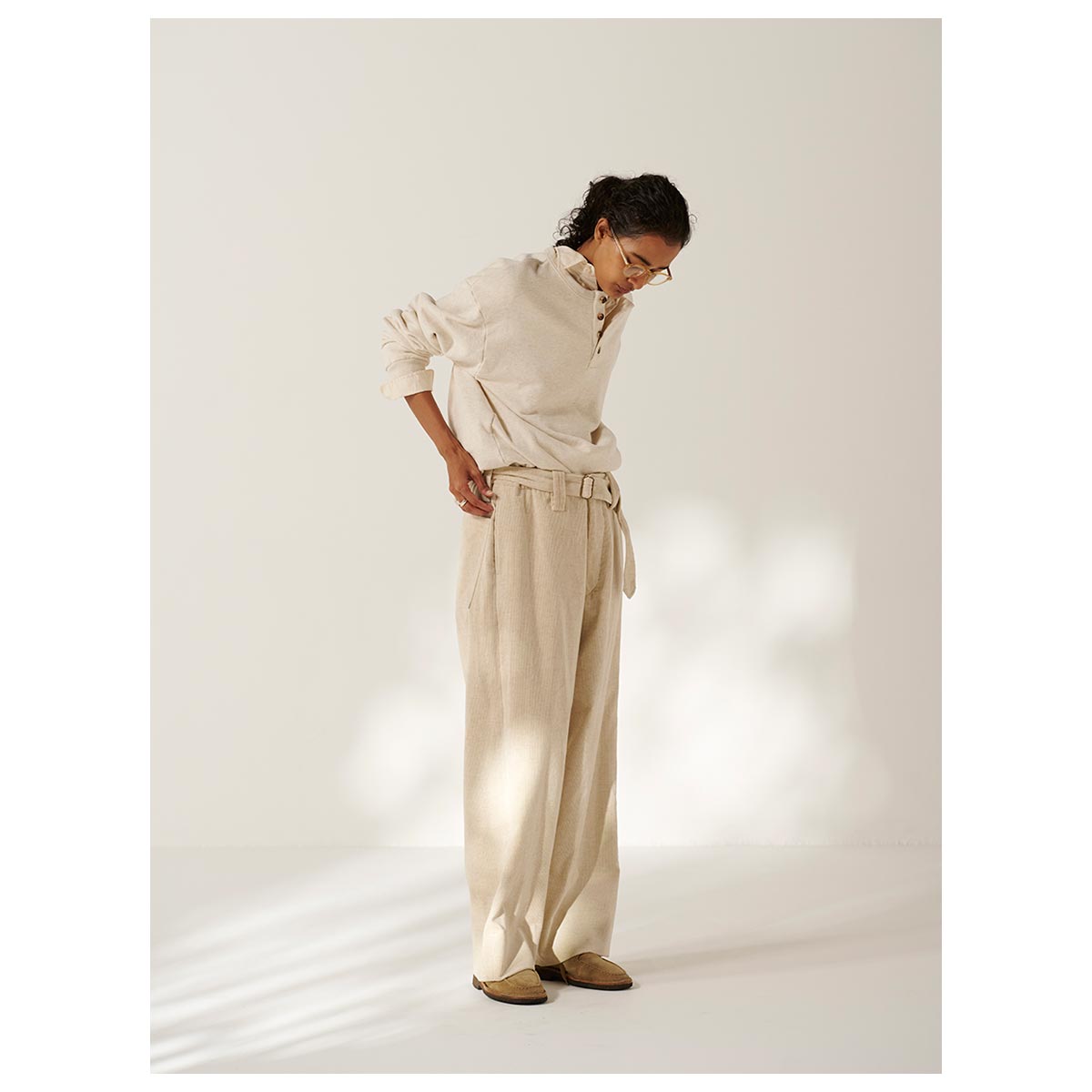 インテリム INTERIM 9ウェール リネン コットン ベルテッド ミルバギー トラウザー 9W LINEN COTTON CORDUROY BELTED MIL BAGGY TROUSER (IT25A071)