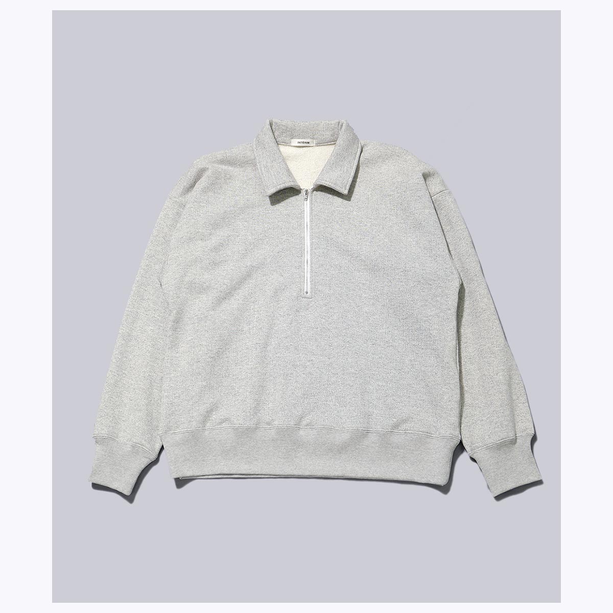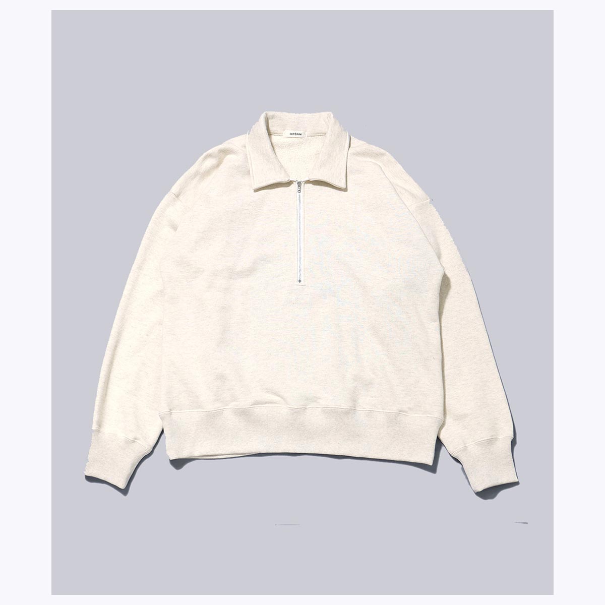 1950年代J.C.ペニー社製のスウェットの中でも貴重な個体であるキッズサイズの襟付きハーフジッ プスウェットシャツをベースに、インテリムらしいサイズ感にチューニングしました。 しっかりと長さを持たせた袖と裾のリブやフラッ トシーマでの縫製、WALDESの復刻ジッパーなど、ヴィンテージらしい仕様を数多く盛り込みました。なおジッパーについてはヴィンテージより もやや長めに設定し、デザインのアクセントにしています。