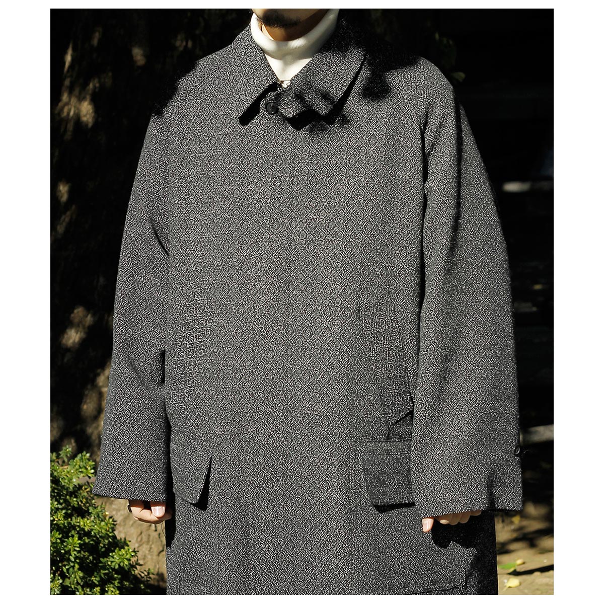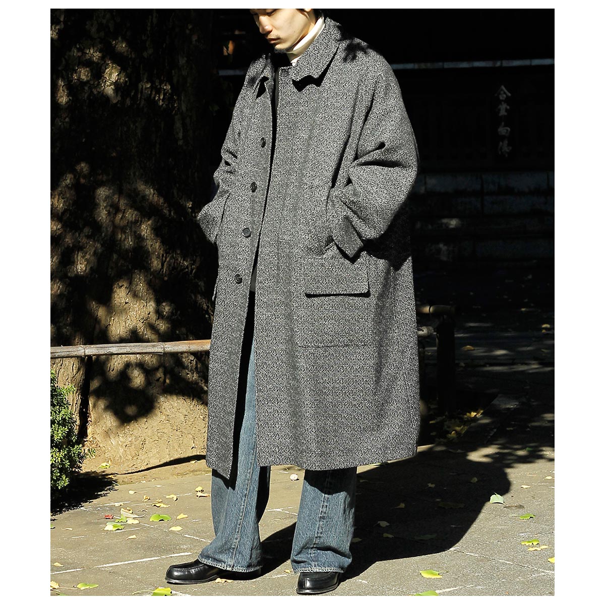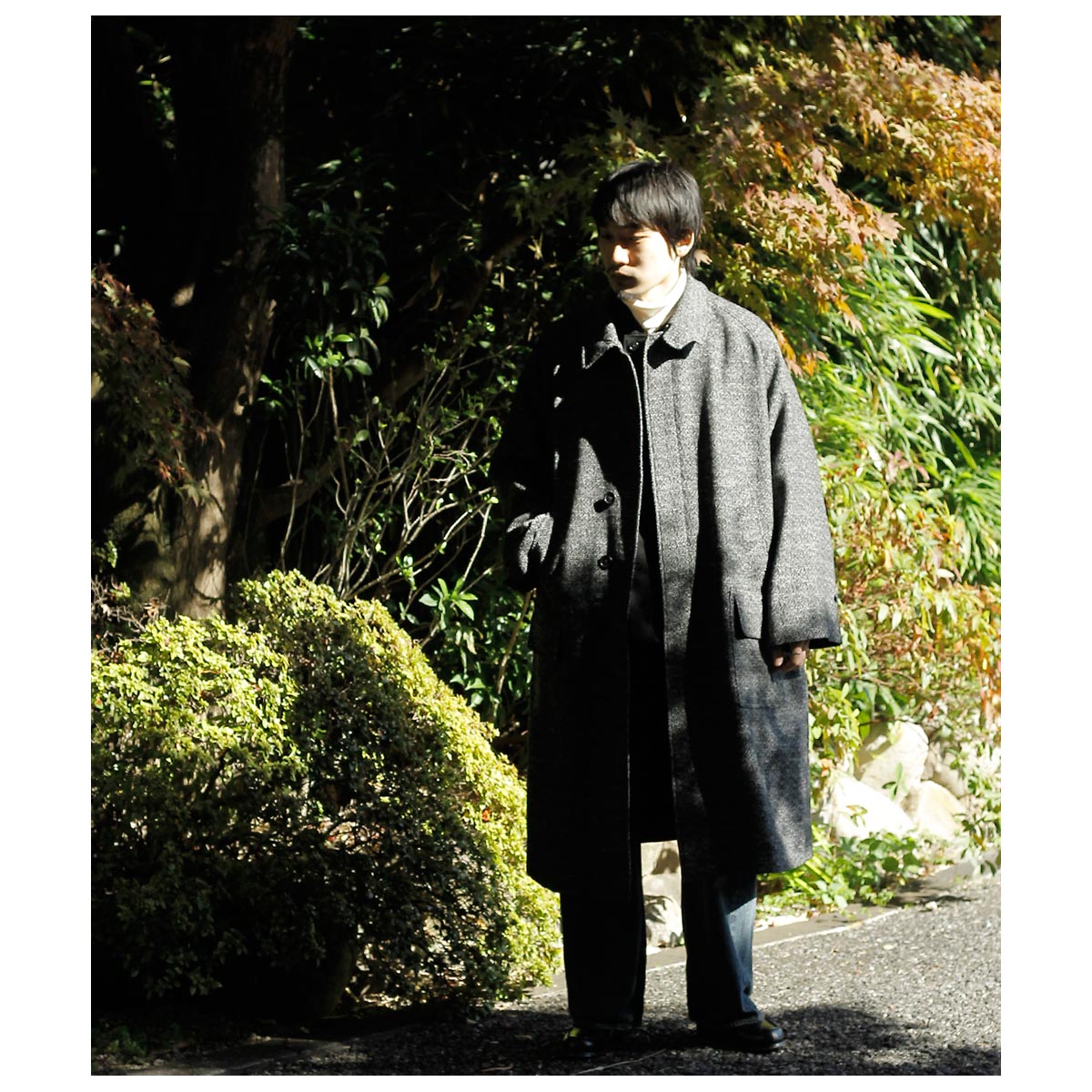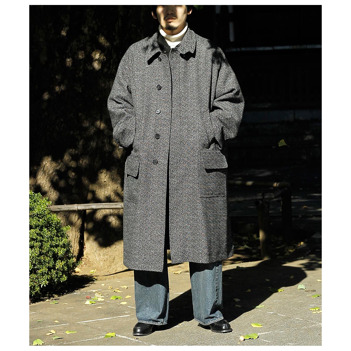 ハイパービッグサイズのバルマカーンコートにいくつかのヴィンテージハンティングジャケットの要素を盛り込み再構築した、4つポケットのハン ティングオーバーコート。