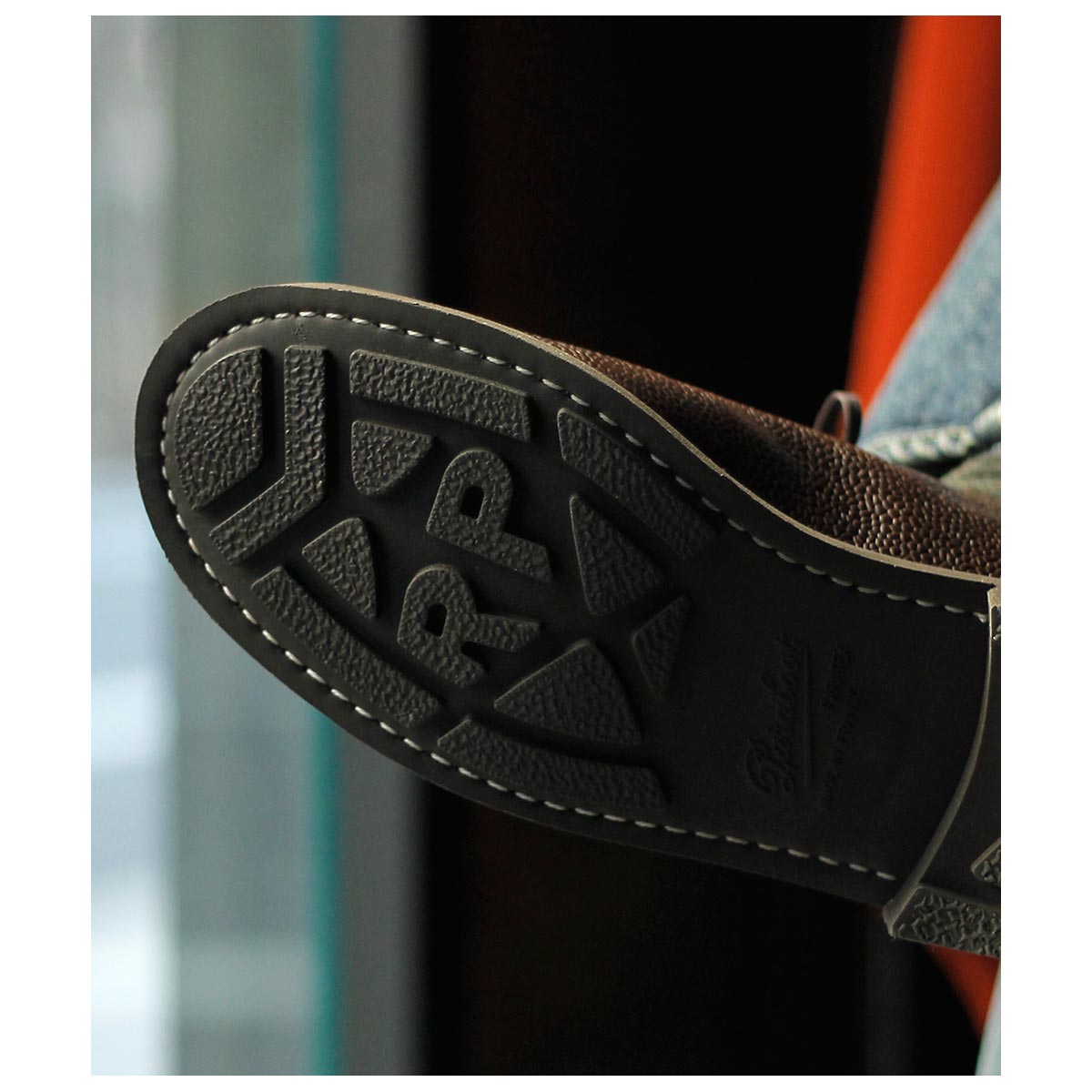 ソールには英国「ハルボロ・ラバー社」のダイナイトソールを採用、レザーソールに比べグリップ力に優れ、耐久性も高いので街歩きにも適しています。