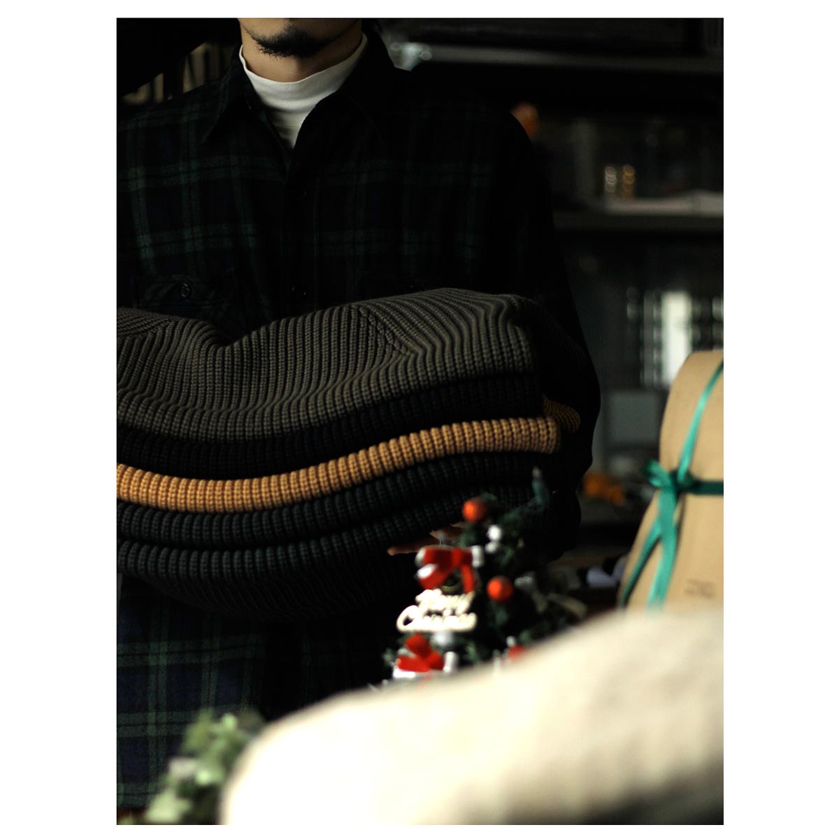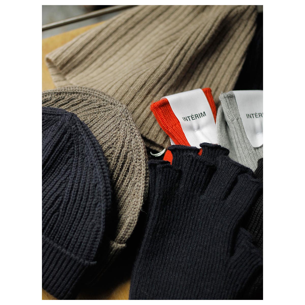 ニット、グローブ、マフラー、スウェット、バッグ、アクセサリー。