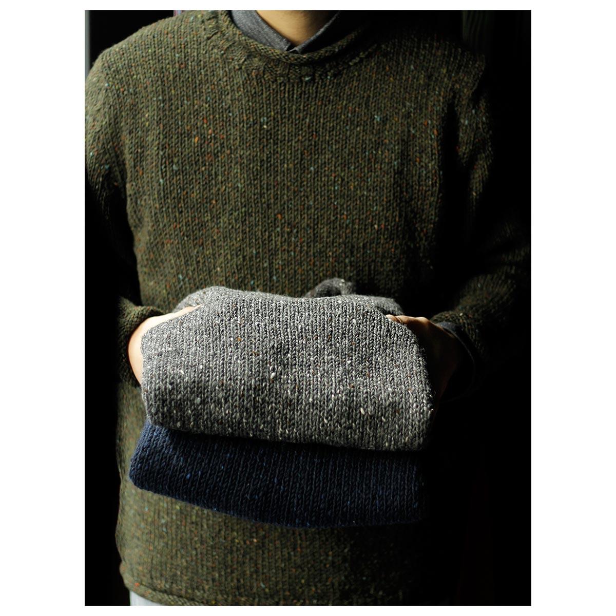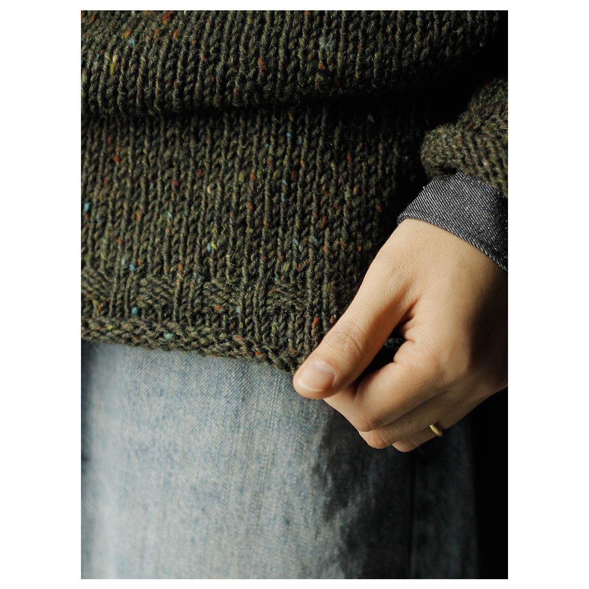 そこにドネガルウールの奥行きが加わることで、このセーターには、他にはない温度感があります。