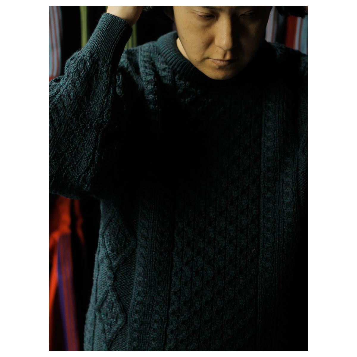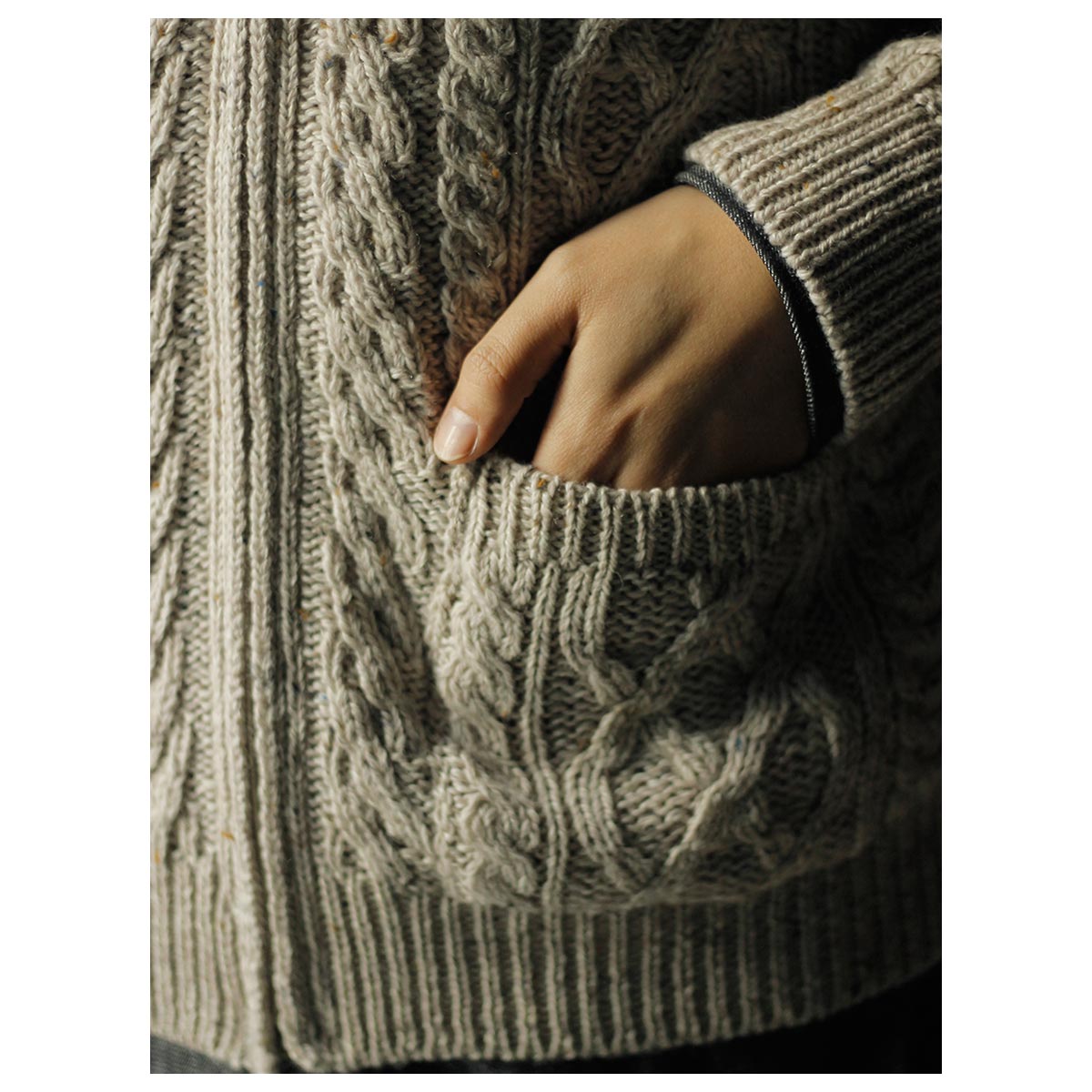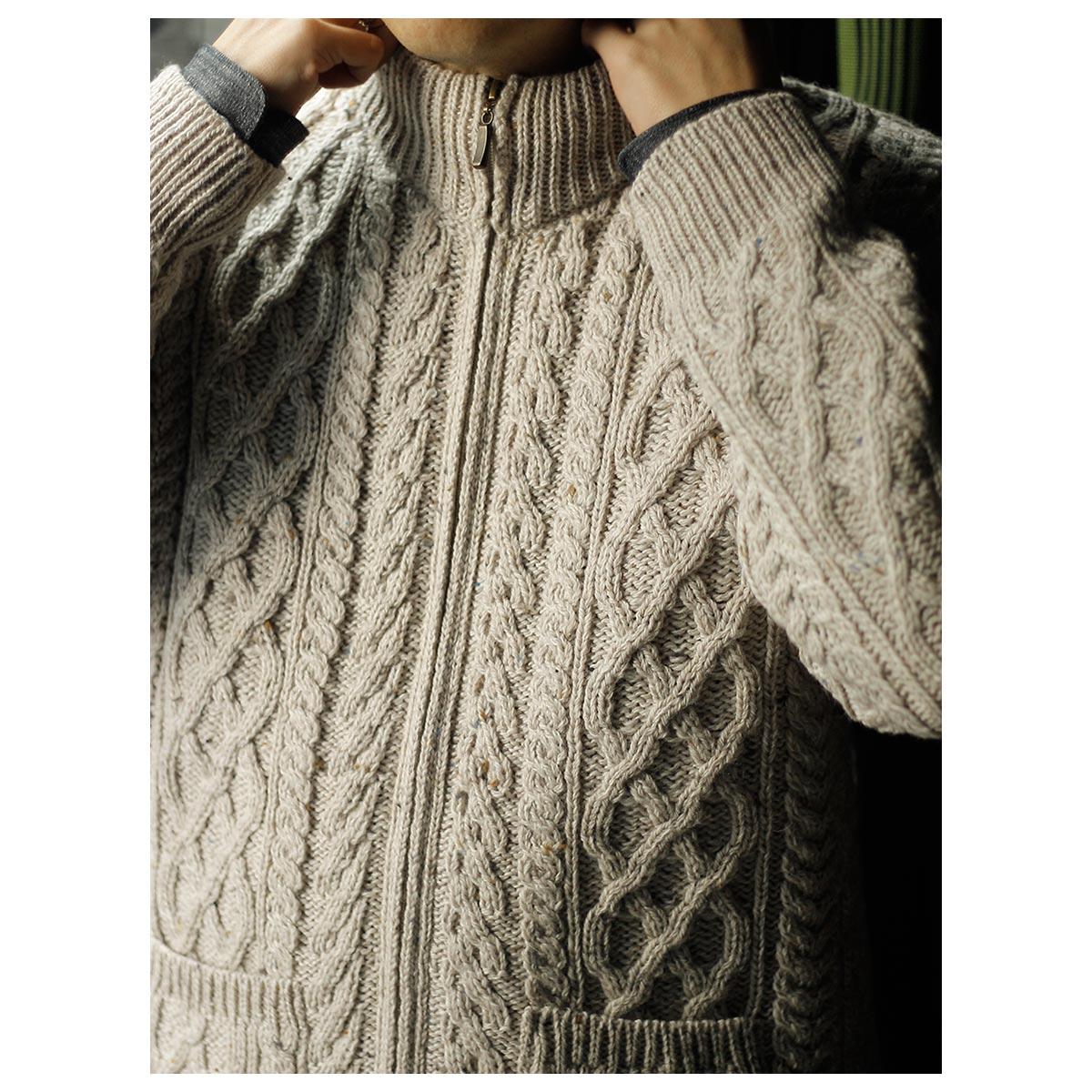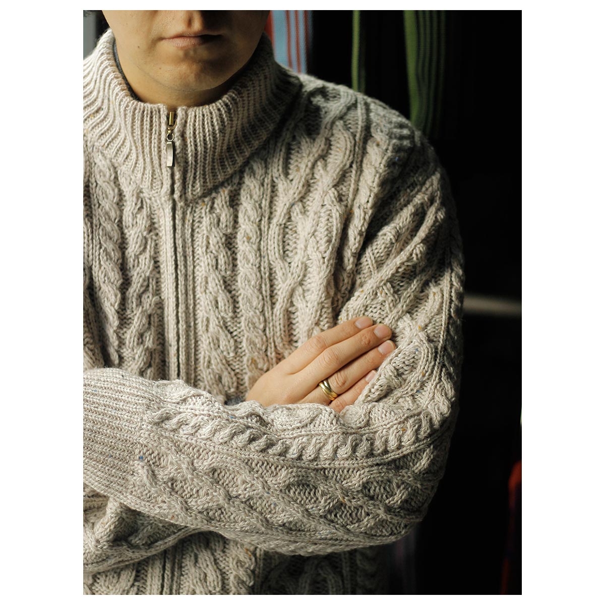 フィッシャーマンの力強い編み柄をベースに、ジップアップという実用的な形に落とし込んだモデル。