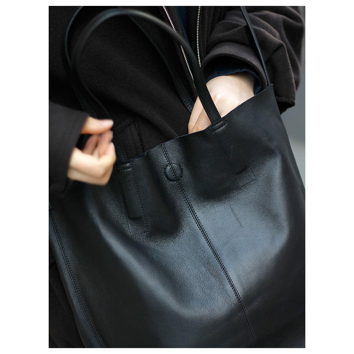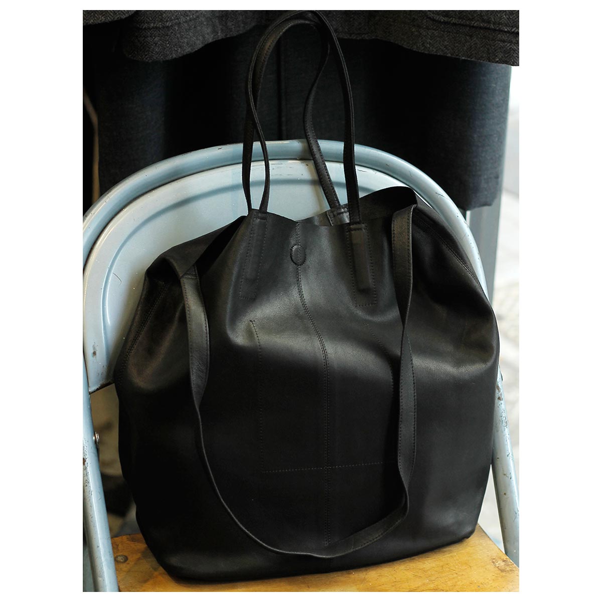 老若男女問わず使える非常にシンプルなデザイン。極力金具を使用せず(内側にあるDカンのみ)、開閉はマグネット式。様々なスタイルにハマる万能なレザーバッグです。