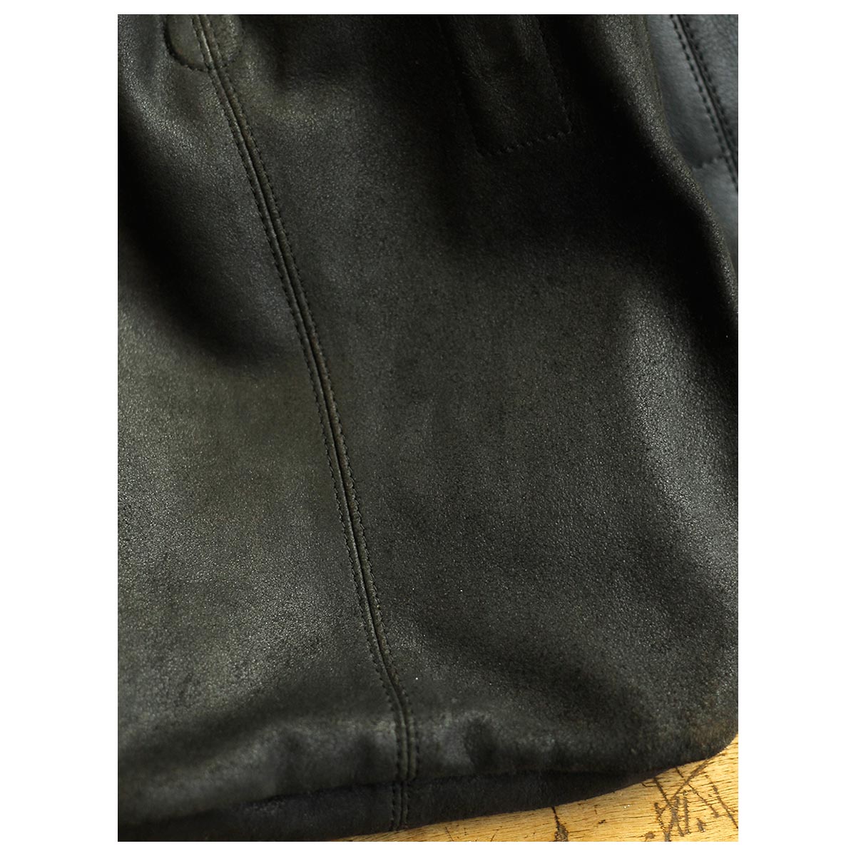 XXLはゴートレザーをふんだんに使用したモデル。その分量から生まれる美しいドレープ感が魅力。またここまで大きな革を綺麗な表情に仕上げている技術に感服するほど。