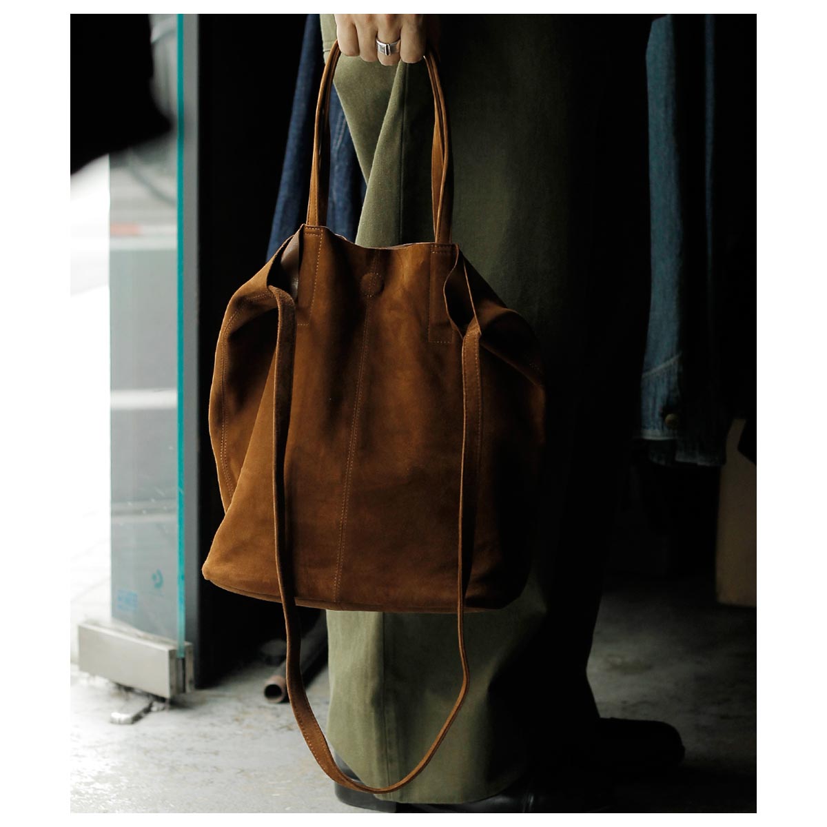 Morpheeからオイルドスエードの3WAYレザートート。 ゴートレザー(山羊革)を使用しており、非常に軽く、丈夫で型崩れしにくいのが最大の特徴。肌ざわりは非常にソフトですが耐久性が高く、繊維密度もシープ革、牛革よりも密度が高くて丈夫です。 使えば使うほど柔らかく、しなやかになる特性を持っているので「経年変化」や「エイジング」も楽しんでいただくことが出来ます。 老若男女問わず使える非常にシンプルなデザイン。極力金具を使用せず(内側にあるDカンのみ)、開閉はマグネット式。様々なスタイルにハマる万能なレザーバッグです。 新生地のオイルドスエード。微量のオイルを入れることで通常のスエードレザーよりも撥水効果が期待でき、より高級な仕上がりになる加工を施しております。使いこむほどに柔らかくなる独自の経年変化もぜひお楽しみください。