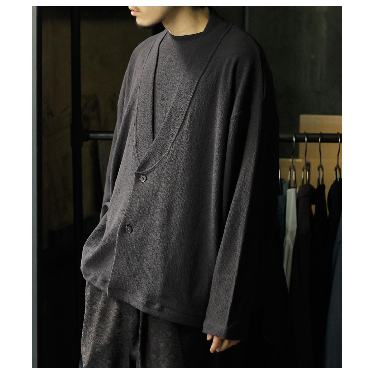 ーディガンという気軽な名前でありながら、見た目の存在感は完全にアウターのスモーキングジャケット。