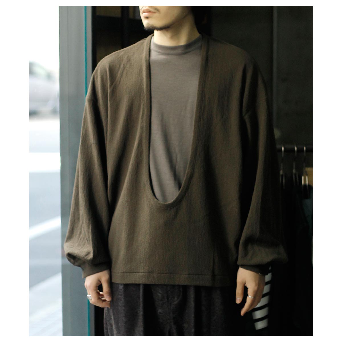 ノノット NONNOTTE ハード ツイスト オーストリッチジャージー ドレープ Uプルオーバー カフス スリーブ Hard Twist Ostrich Jersey Drape U Pullover with Cuff Sleeve (N-26S-092)