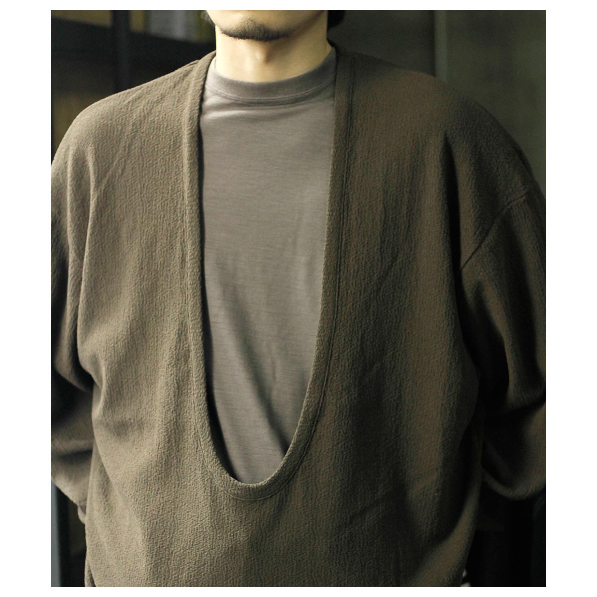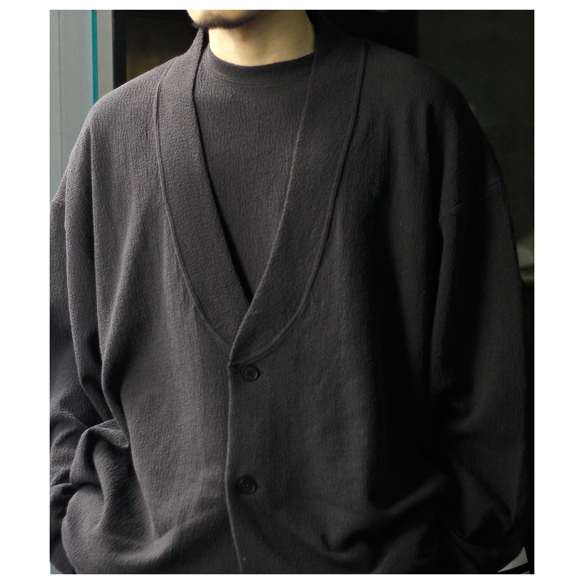 ーディガンという気軽な名前でありながら、見た目の存在感は完全にアウターのスモーキングジャケット。