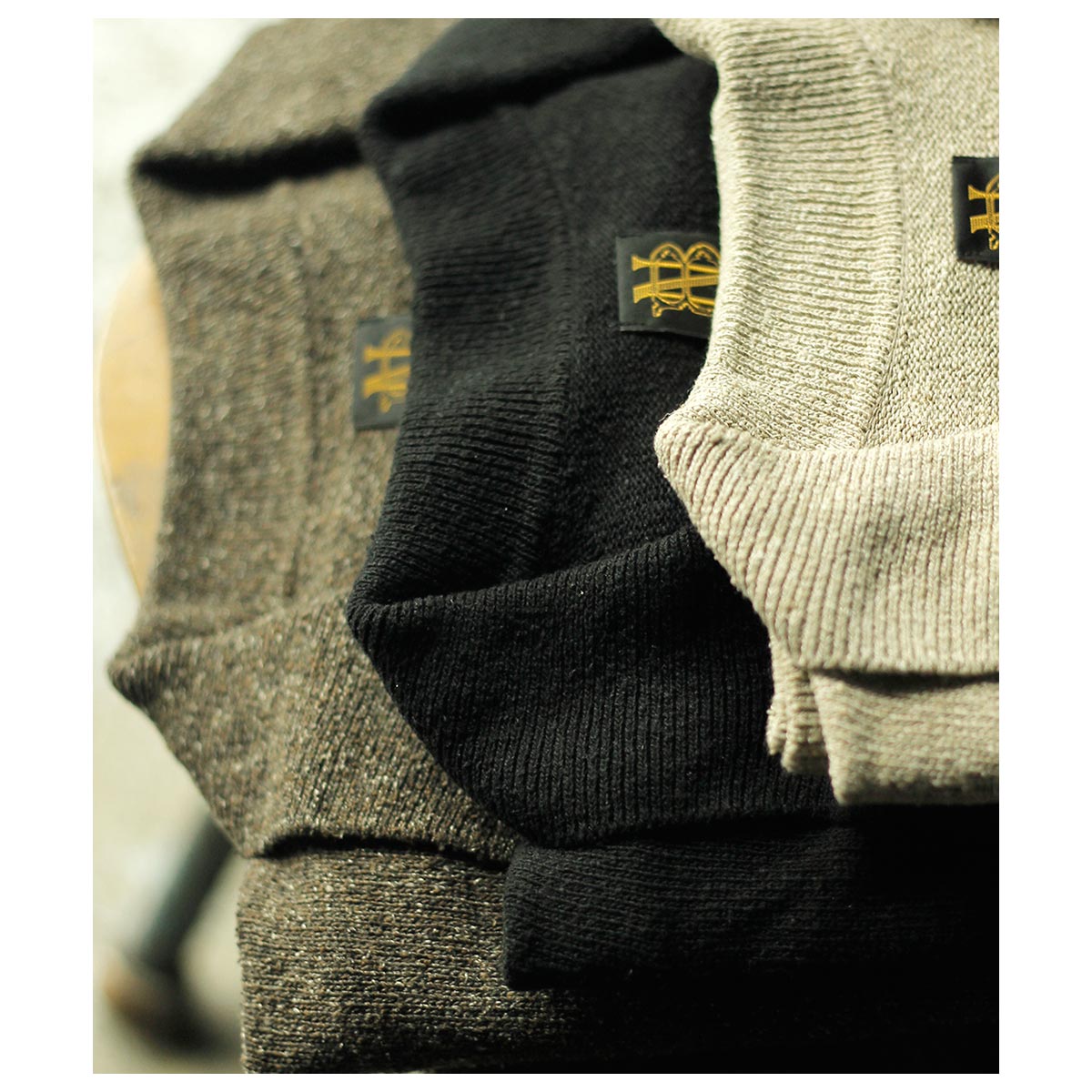 クルーネックと合わせたアンサンブルでの着用も非常におすすめ。