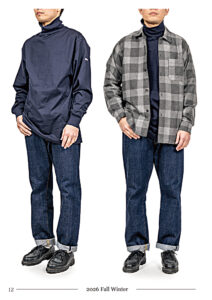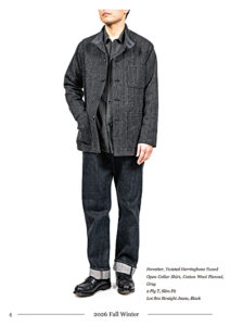 「このミシン、このアタッチメントがあるからこの製品を」といったモノ作りにこだわる。すべての製品がメイドインジャパンであり、自分で工程・設備を理解した工場でのみ生産を行う。古着を研究し、その縫い方、シルエットの特徴を学び各工程ごとに専用のミシン・アタッチメントを用いる。