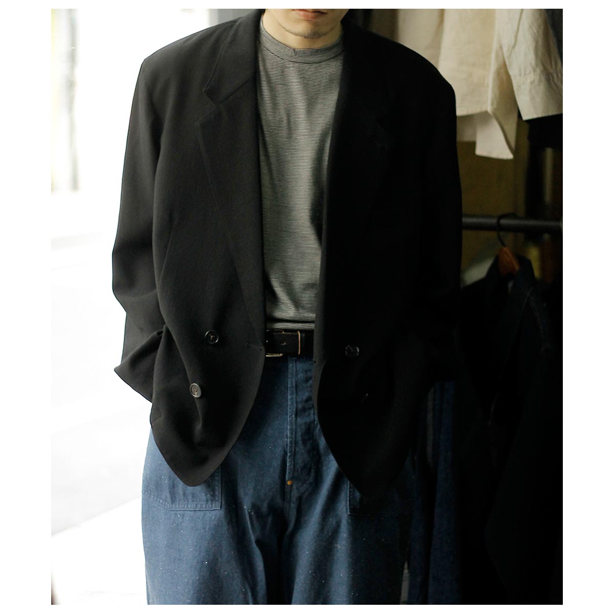 あえてグランクのペインターパンツと合わせることで程よくカジュアルダウンしています。