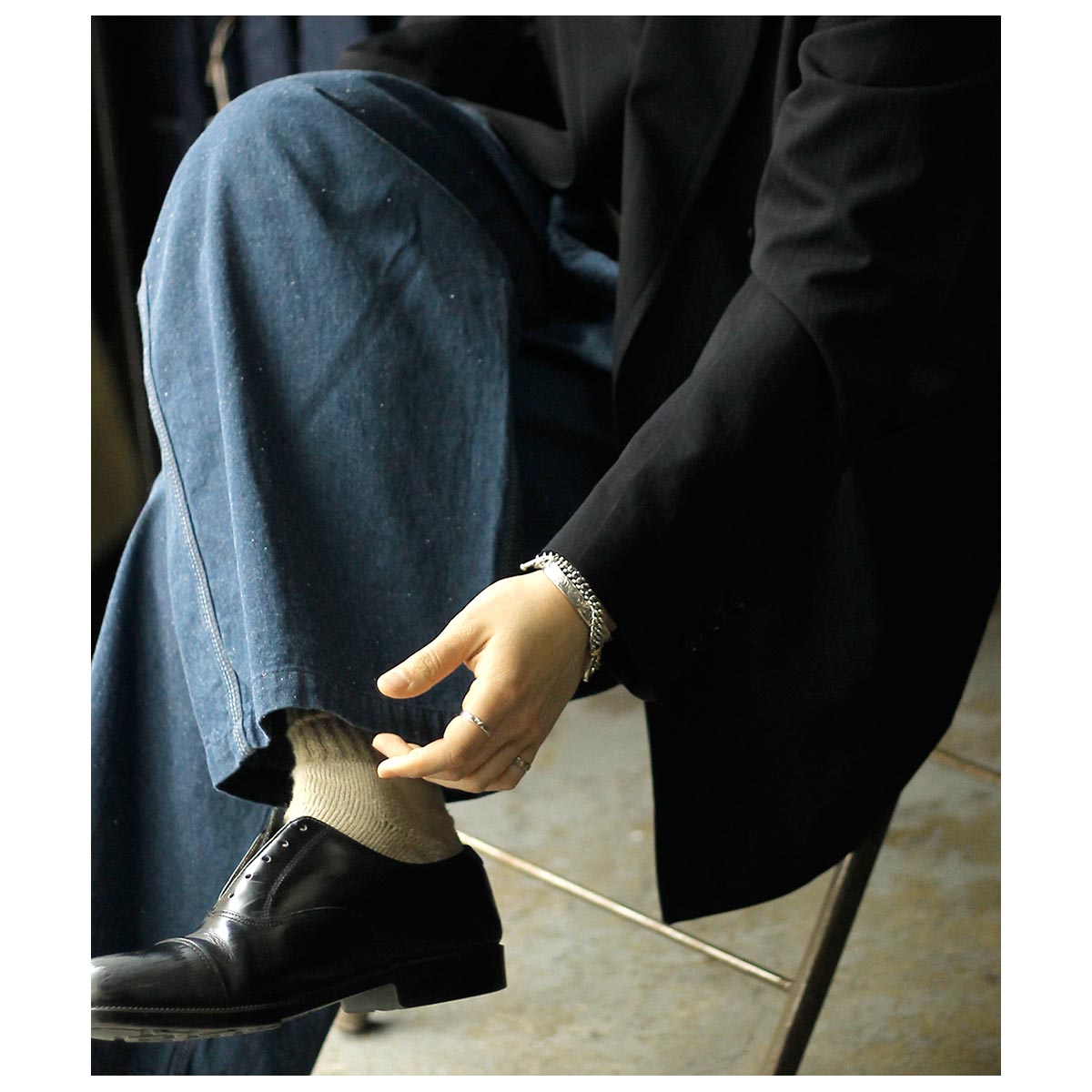 ラフな合わせながらもジャケットの持つきちんと感によって自然とバランスが取れます。