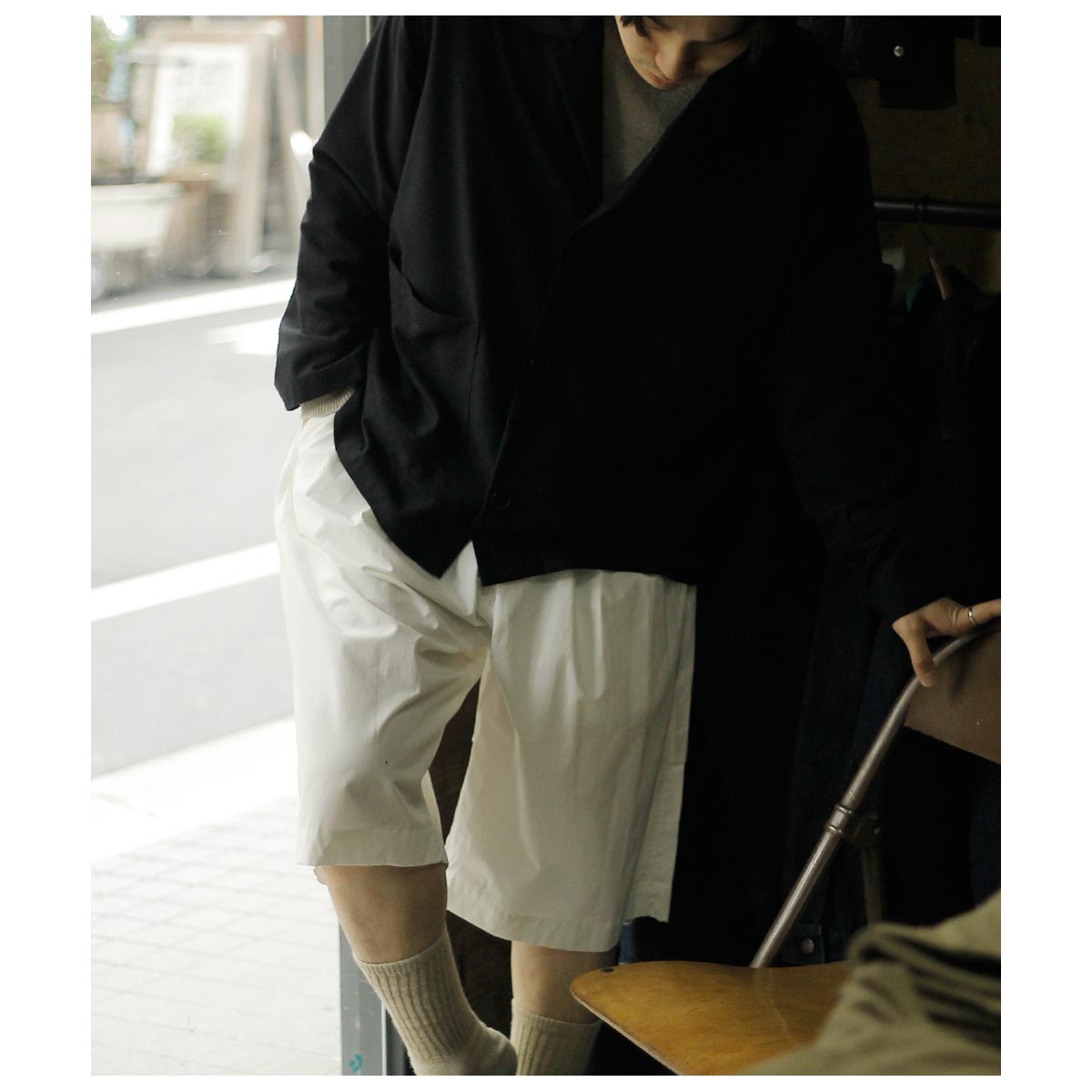 今回はノノットのバギーショーツと合わせ、初夏も見据えたスタイリングにしてみました。