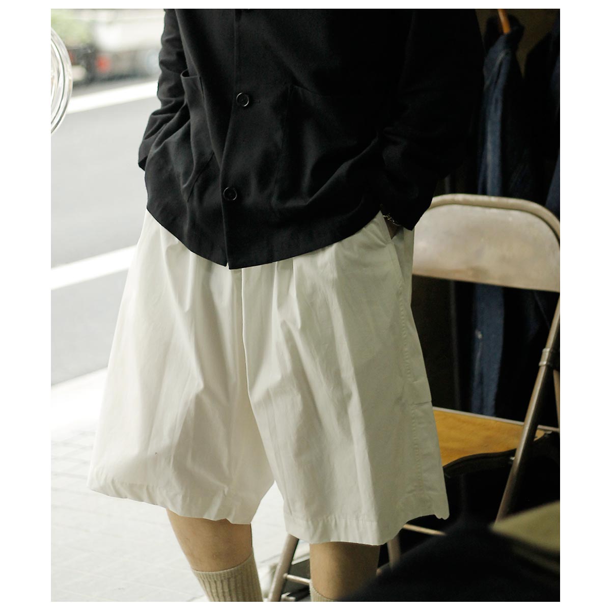 ノノット NONNOTTE クリア ヘビー ブロード プリーツ ドック ショーツ トラウザー Clear Heavy Broadcloth Pleat Dock Shorts Trousers (N-26S-096)