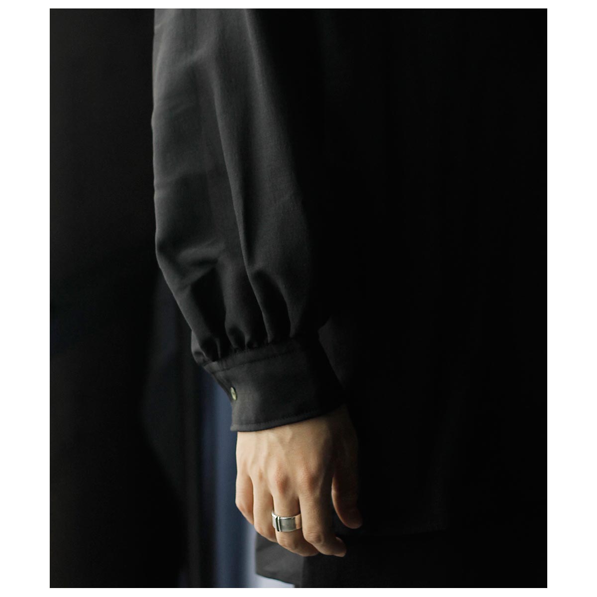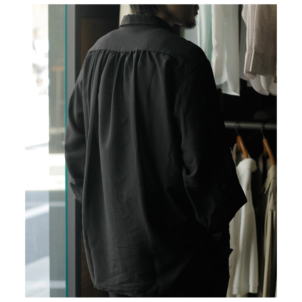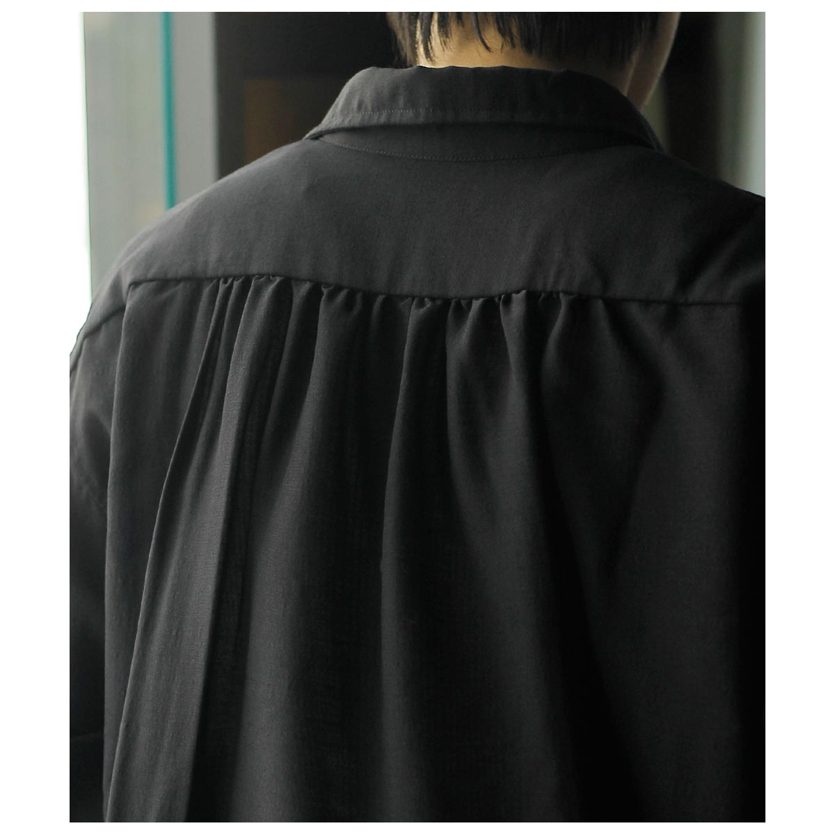 形はデビューシーズンより好評頂いている、ギャザーによる量感あるフォルムが特徴的なスキッパーシャツ。柔らかい肌触りで、透け感のある上質なウールシルク素材を使用しており、美しいドレープ感にも魅力があります。レディースらしいテクニックにメンズテイストを共存させ、品の良さに程よいリラックス感を持たせたAXISの定番の1着です。