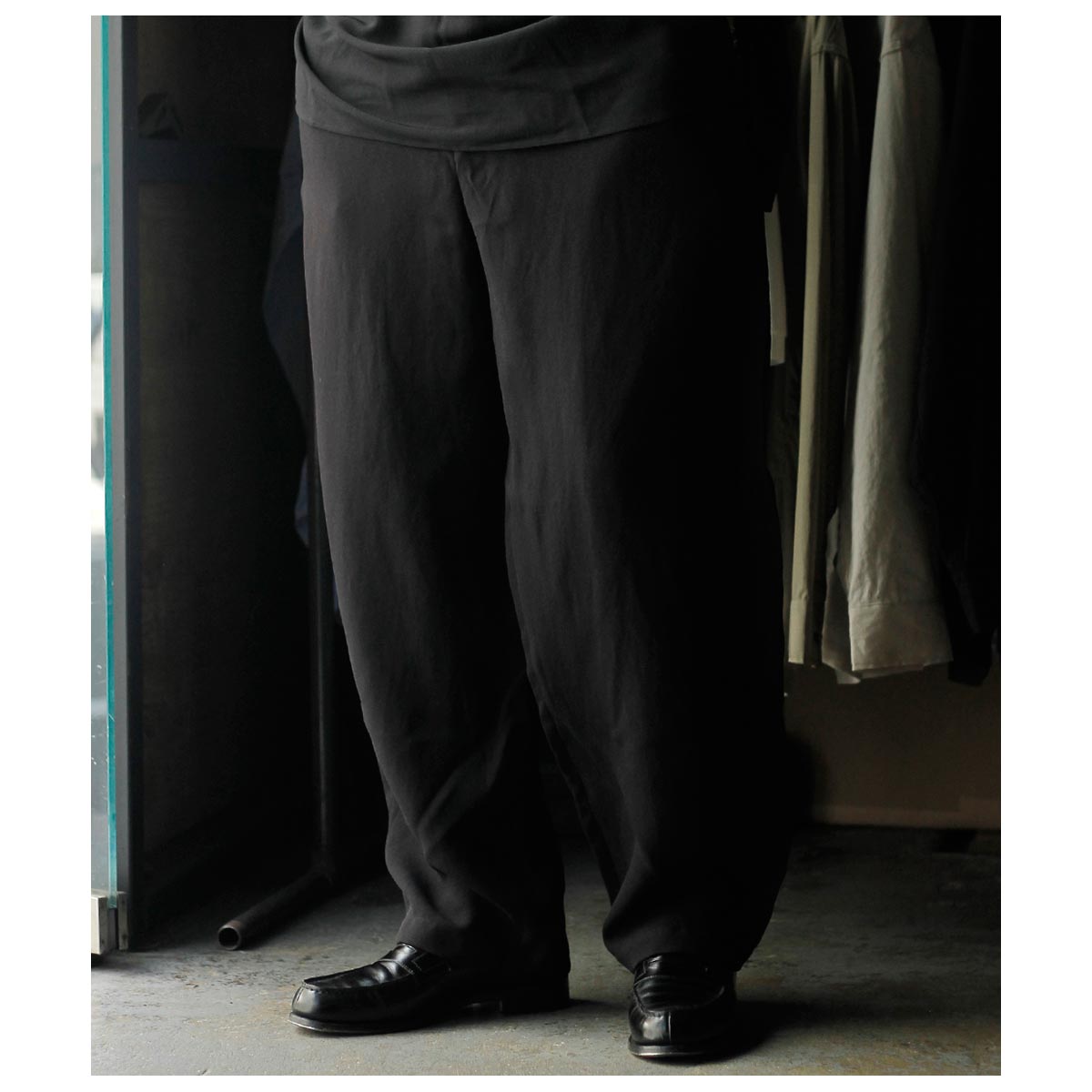 腰回りにゆとりがあり、そこから緩やかにテーパードのかかる綺麗なシルエット。イージーパンツながらスラックス見えする上品さです。