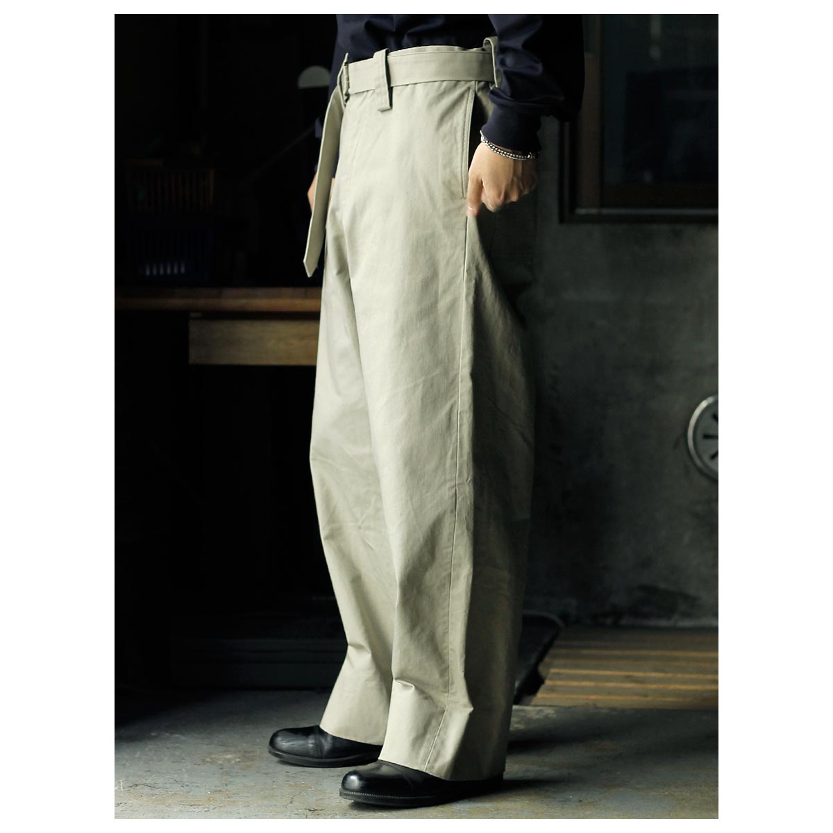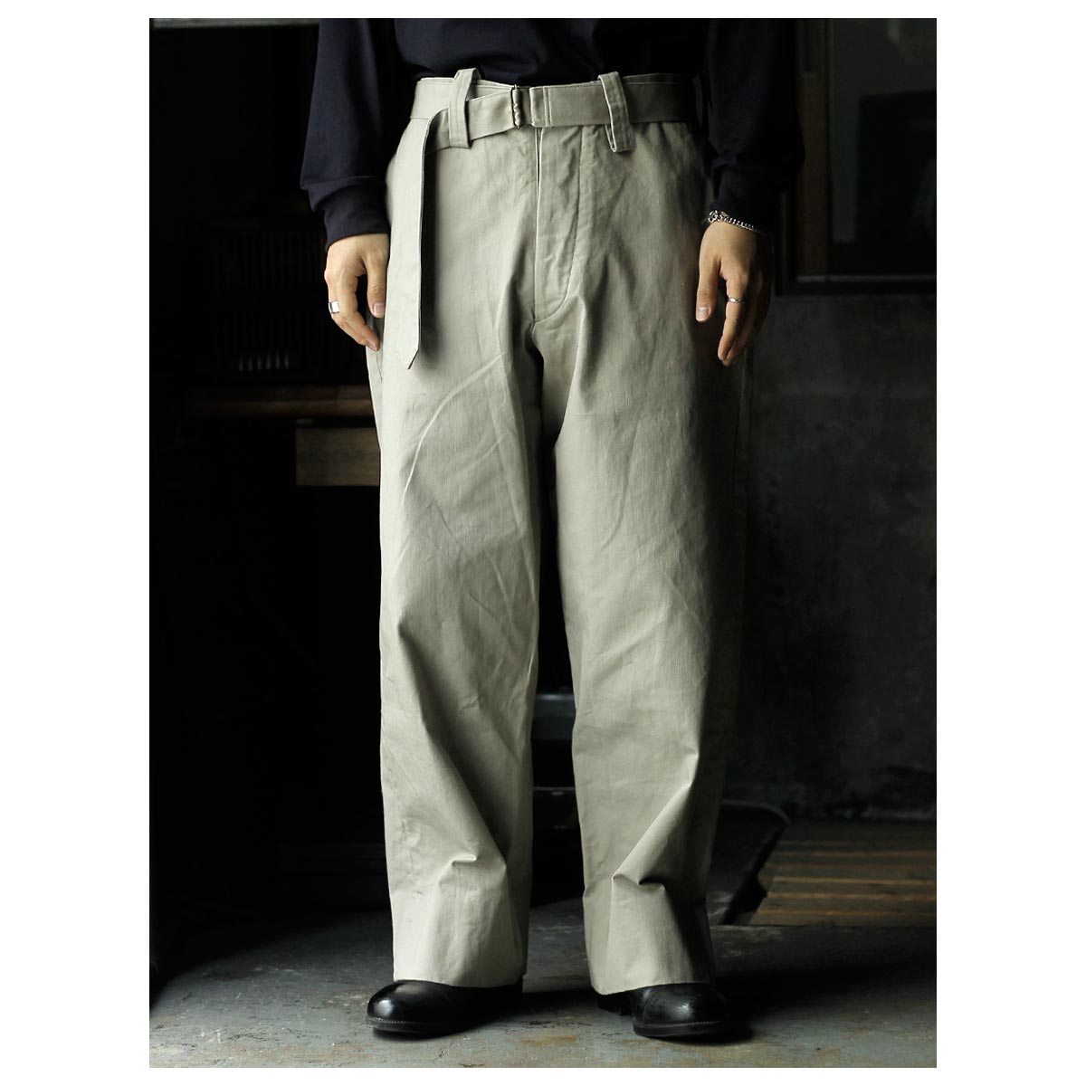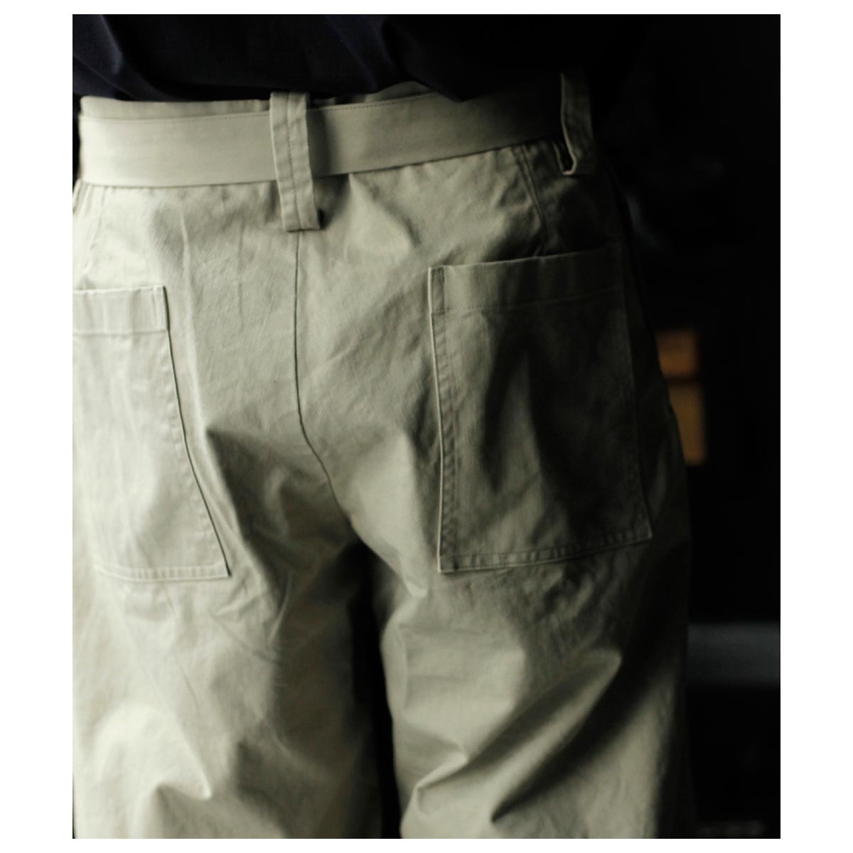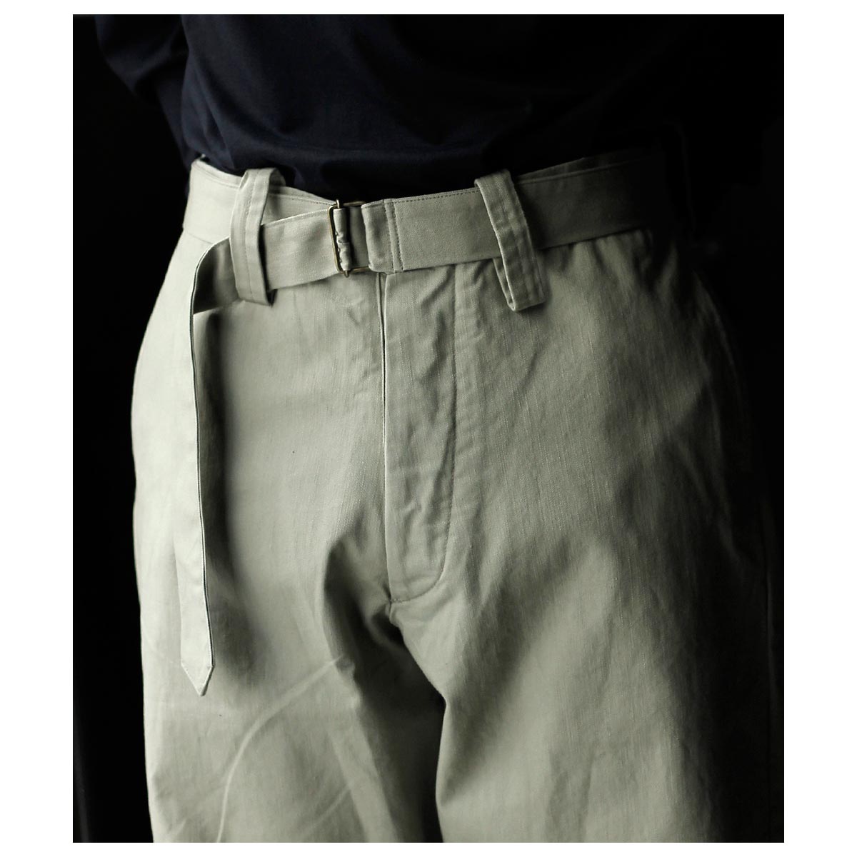 インテリム INTERIM ファブリック ワッシャー チノ ベルテッド フレンチ アーミー ミル バギー トラウザー FABRIC WASHER CHINO BELTED FRENCH ARMY MIL BAGGY TROUSER (IT26S013)