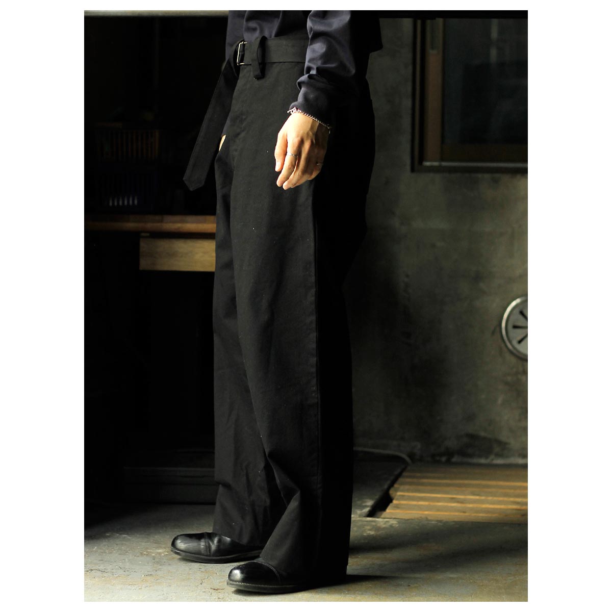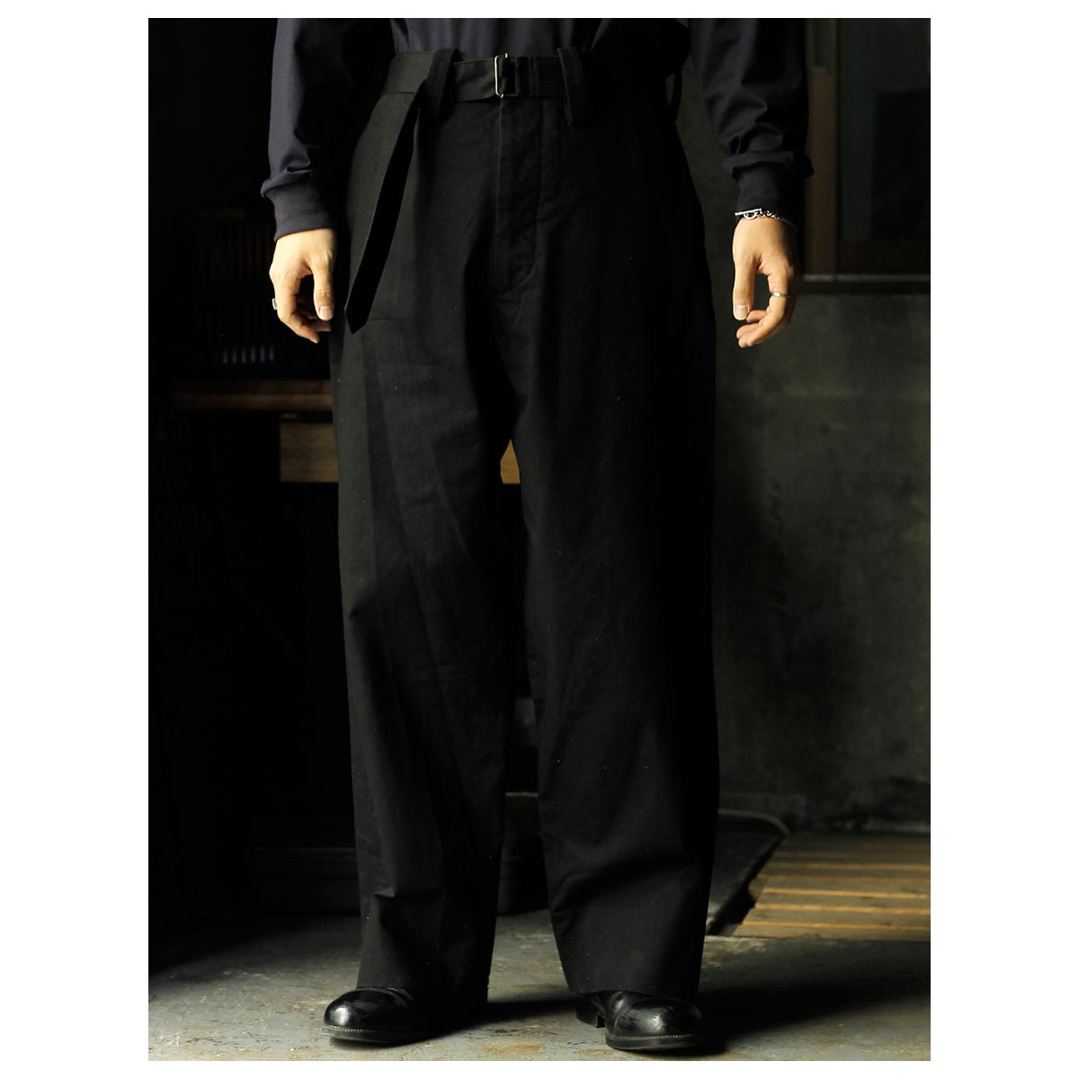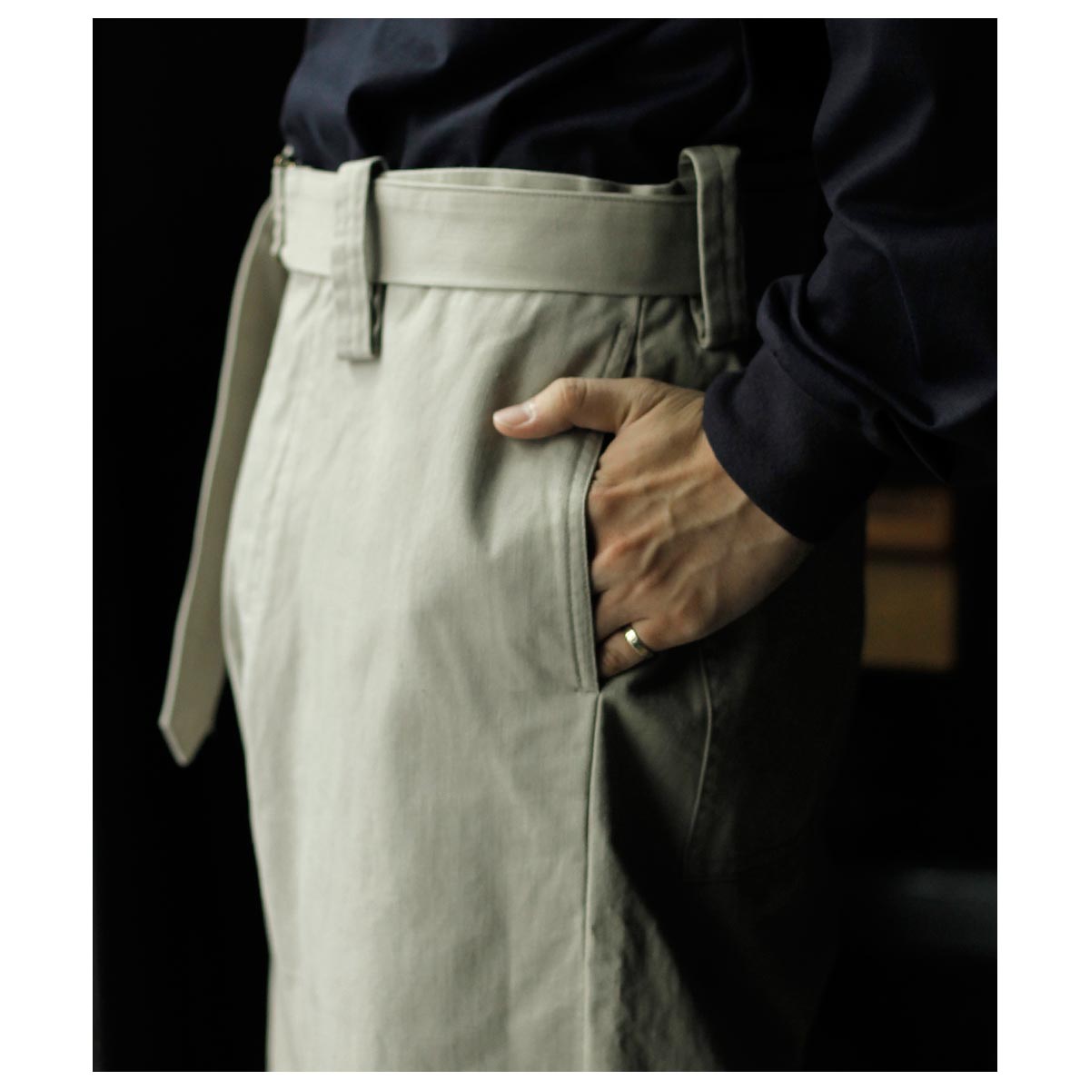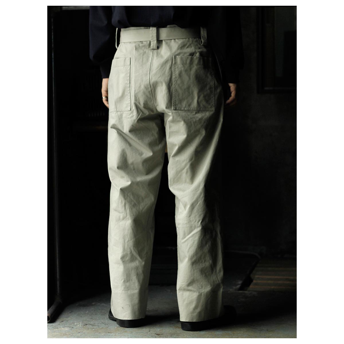 インテリム INTERIM ファブリック ワッシャー チノ ベルテッド フレンチ アーミー ミル バギー トラウザー FABRIC WASHER CHINO BELTED FRENCH ARMY MIL BAGGY TROUSER (IT26S013)