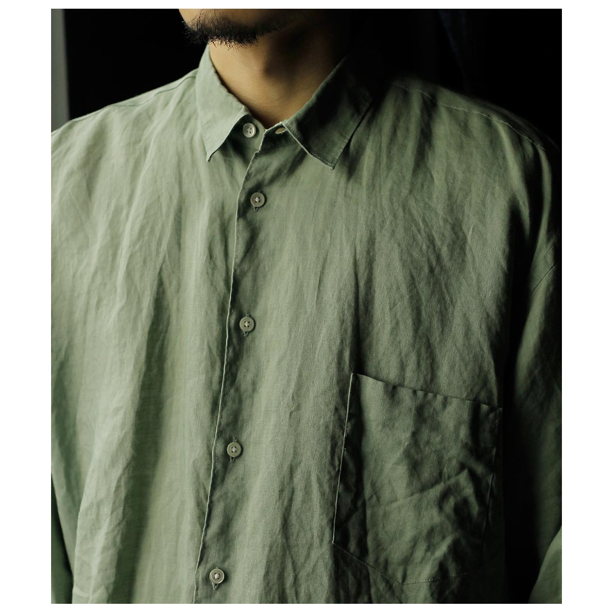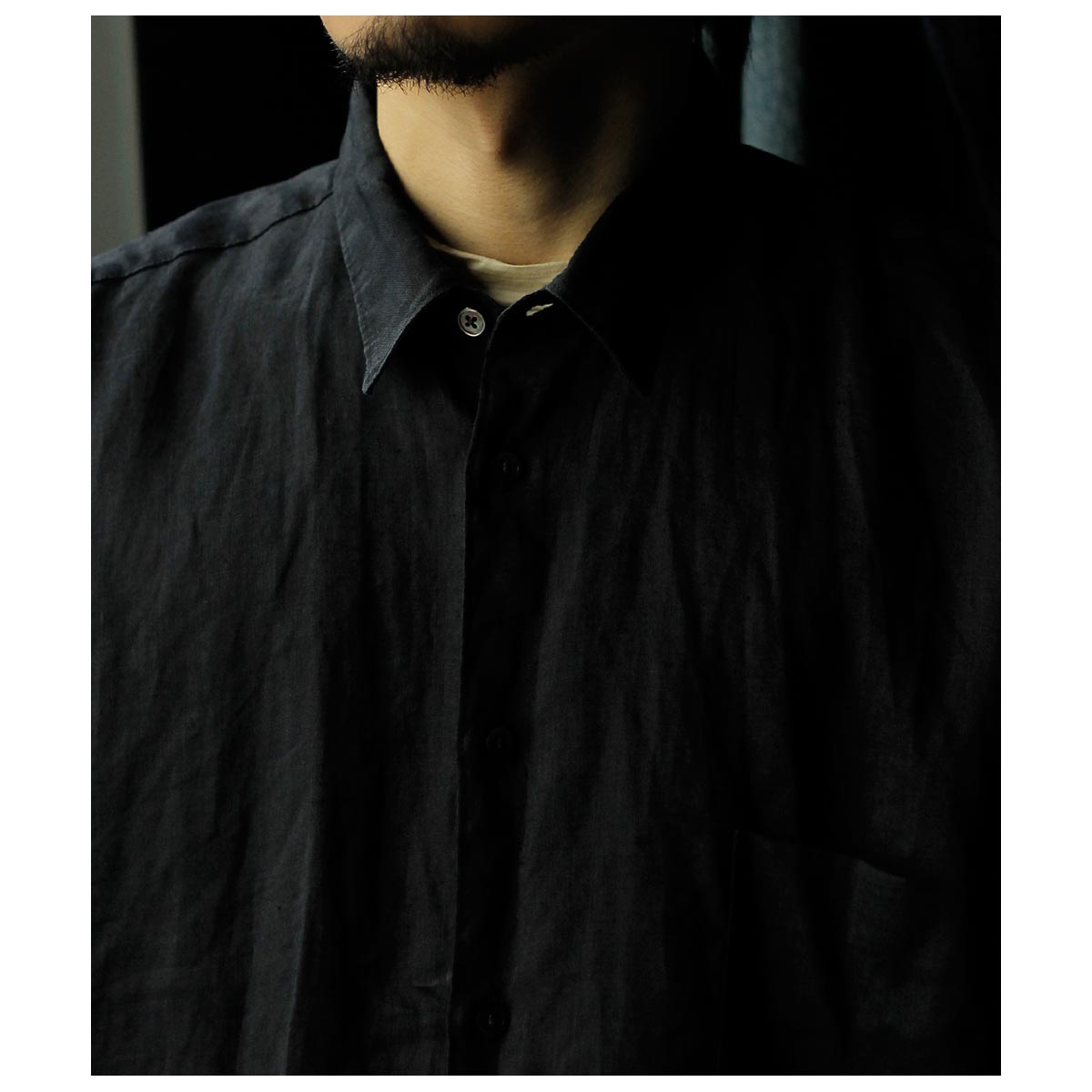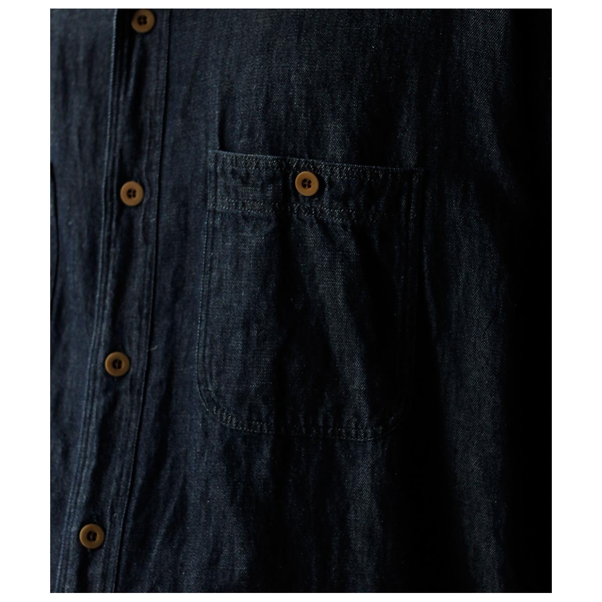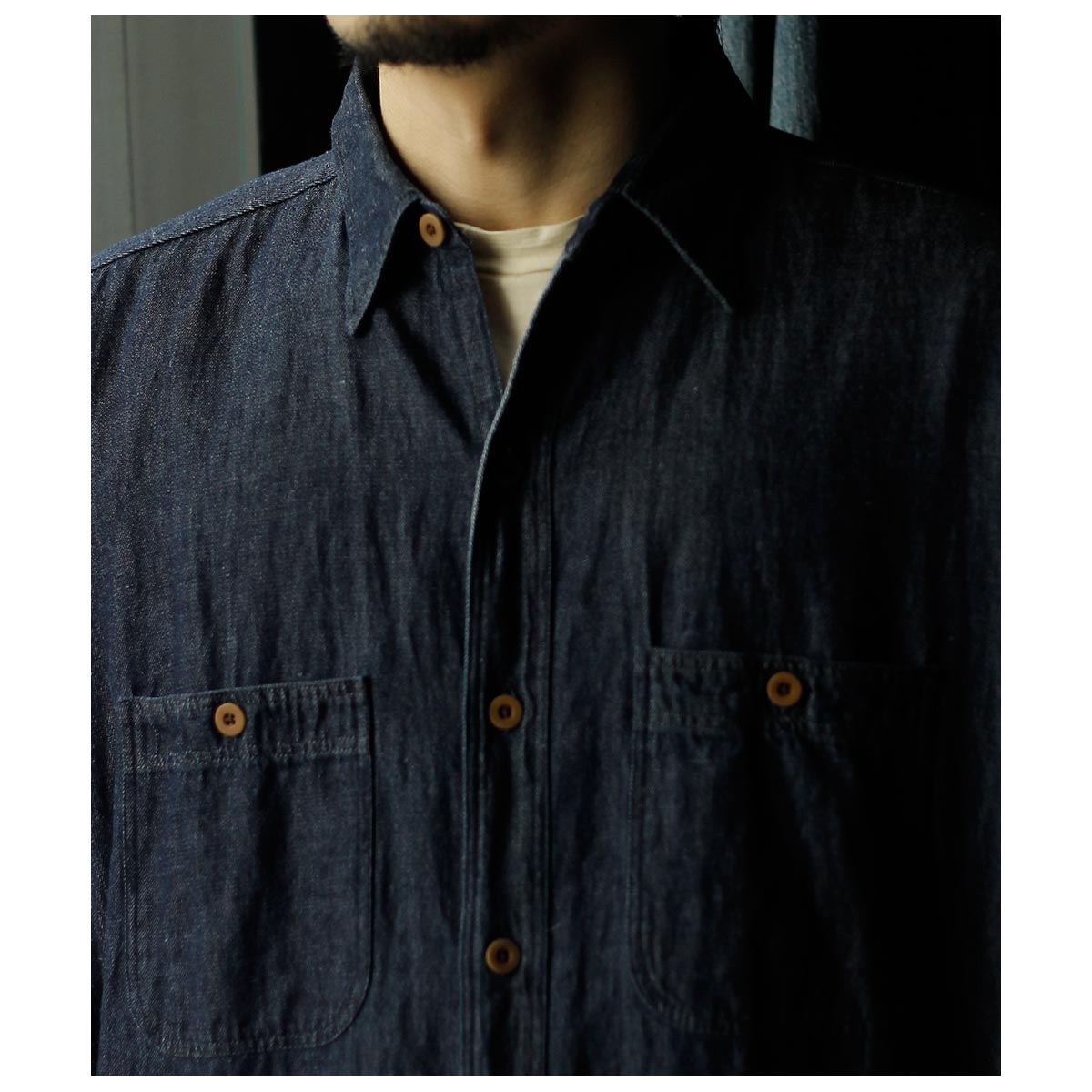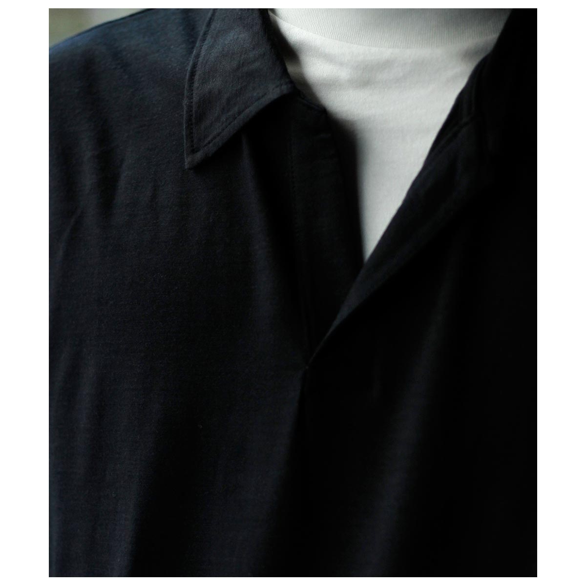 特徴的な両胸のポケットや小ぶりの衿など代表的なディテールを踏襲しつつ、運針の細かいステッチや狭めのステッチ巾、生地の質感を存分に生かすたっぷりとしたシルエットでカジュアルでありながらドレッシーなムードを加えました。 TYPE2は前立てをあえて独立して付けることでドレスシャツの仕立てを盛り込みました。
