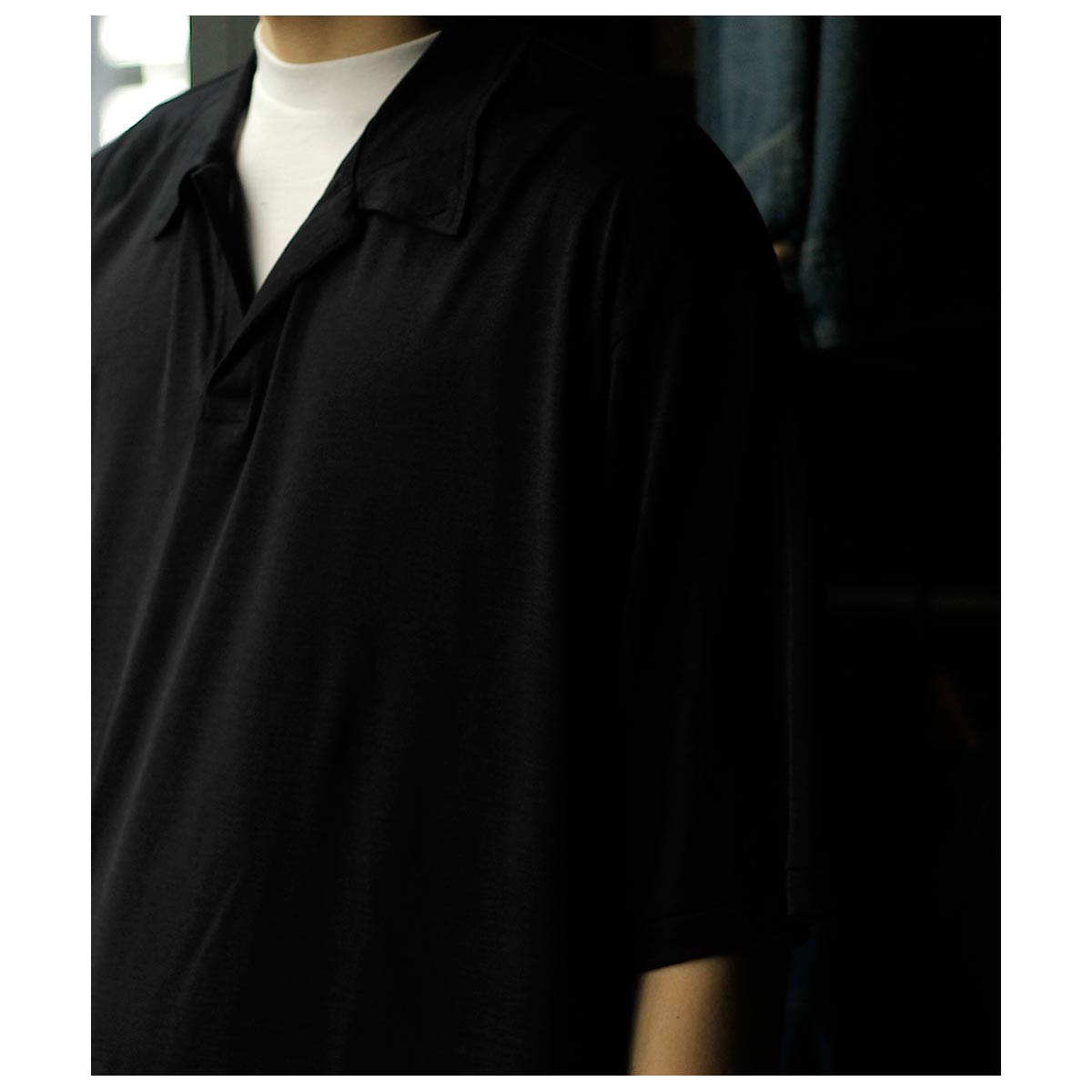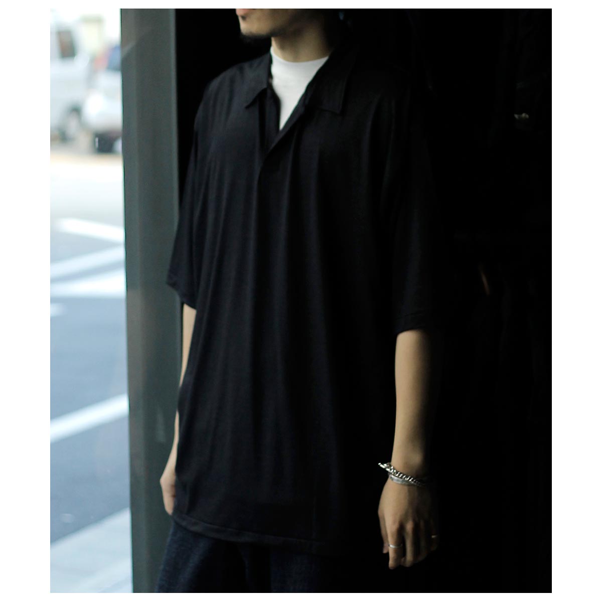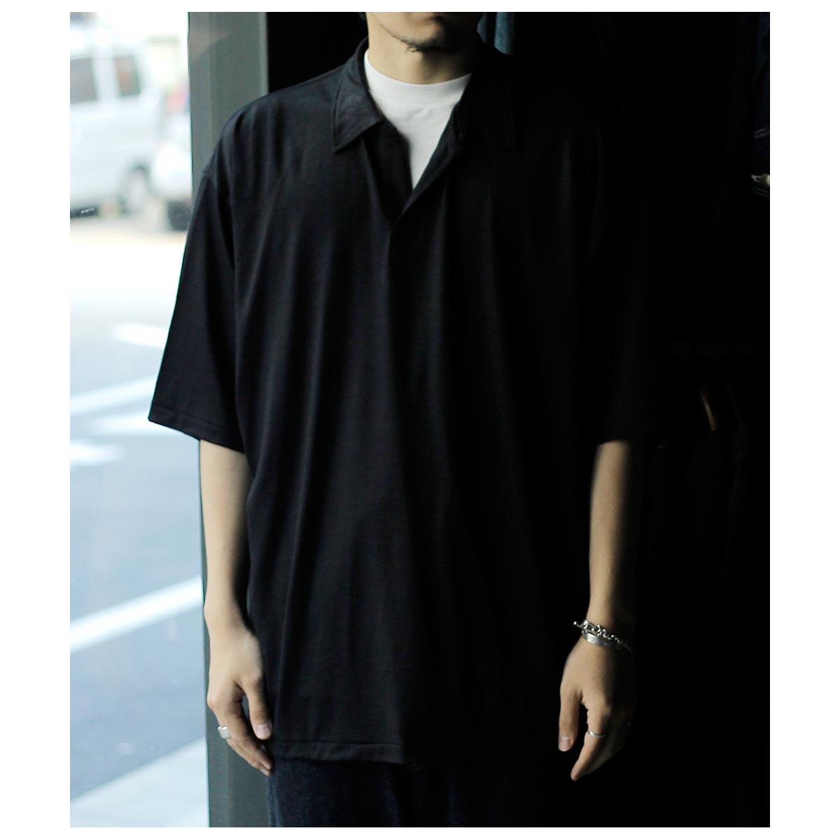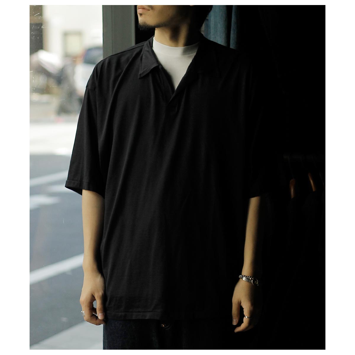 インテリム INTERIM シルク コットン ジャージー デッドストック ファブリック ハイパービッグ スキッパー シャツ SILK COTTON JERSEY DEADSTOCK FABRIC HYPER BIG SKIPPER SHIRT (IT26S199)