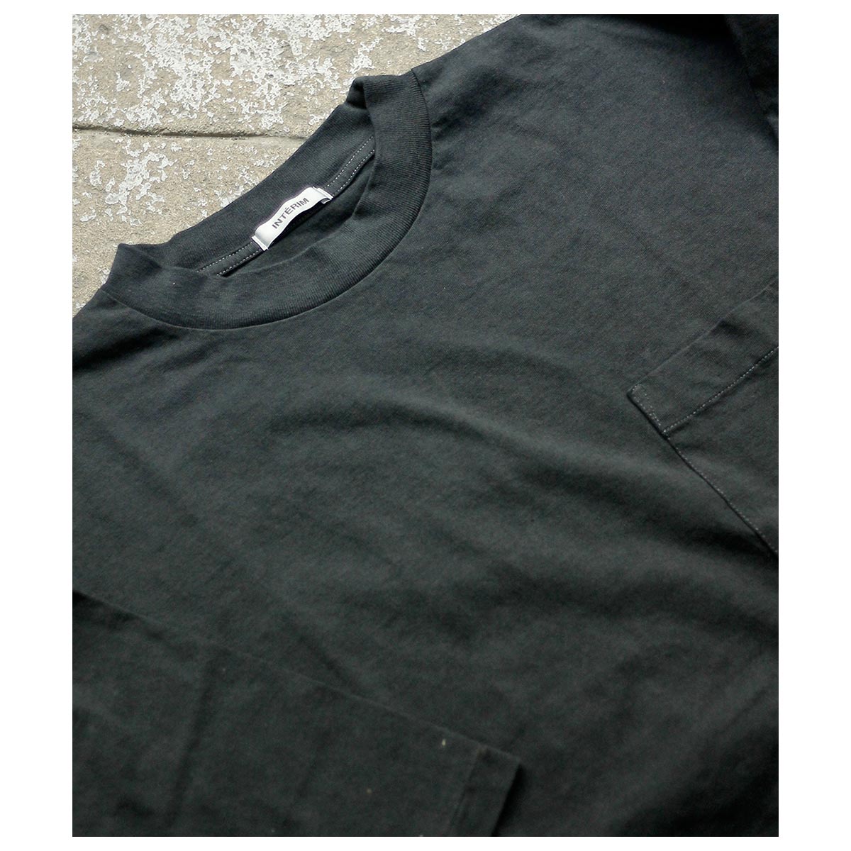 インテリム INTERIM ヴィンテージ フェード ブラック ハイパービッグ ポケット Tシャツ VINTAGE FADE BLACK HYPER BIG POCKET T-SHIRT (IT26S251)