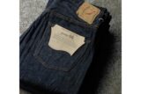 シンプルな4ポケタイプのベイカーパンツに、凹凸が横シマのように現れるバックサテン生地を採用。もちろん生地自体もオリジナルで製作。モデルとなっているのは40年代のいわゆる初期型。フロントがボタンフライで、ウェストにアジャスターボタンが付いています。腰回りもフィット感があり、しっかりと収まるので、ベルトがなくても快適なフィットが期待できます。