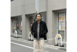 ”ウールギャバジンの神様”と名高い尾州の毛織メーカーの代表作とも言えるウールギャバジンを使用。高密度に織り上げたウール生地に特殊な含浸加工を施すことで、他にはないカリカリとした手触りを実現しています。“リアルブラック”とも言える深い黒色も、同社が得意とする表現です。