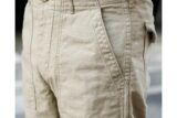 股上をやや浅めに設定し、モモの部分からスソにかけてすっきりと細身なストレートシルエットです。ディティールはいわゆる初期型と言われるモデルをモチーフにしており、大きいポケットを前後で計4つ、サイドにアジャスターが付いています。細身なパンツの脱ぎ着の効率性から、フロントはボタンフライから、ジッパーフライに変更されています。