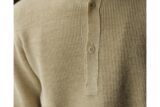 デイリーケアを考慮し製品洗いを入れて仕上げていますが、度目が詰まっているので寸法変化はほどんどないという頑丈さが特徴。衿、裾や袖口、ウエストリブ、また脇下や股下のマチには共糸で編みたてた横編みリブを使用しています。