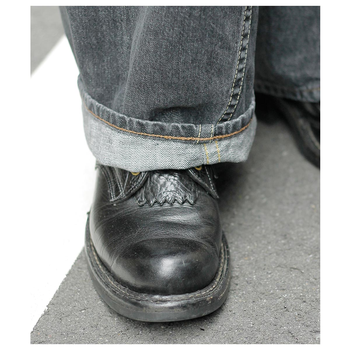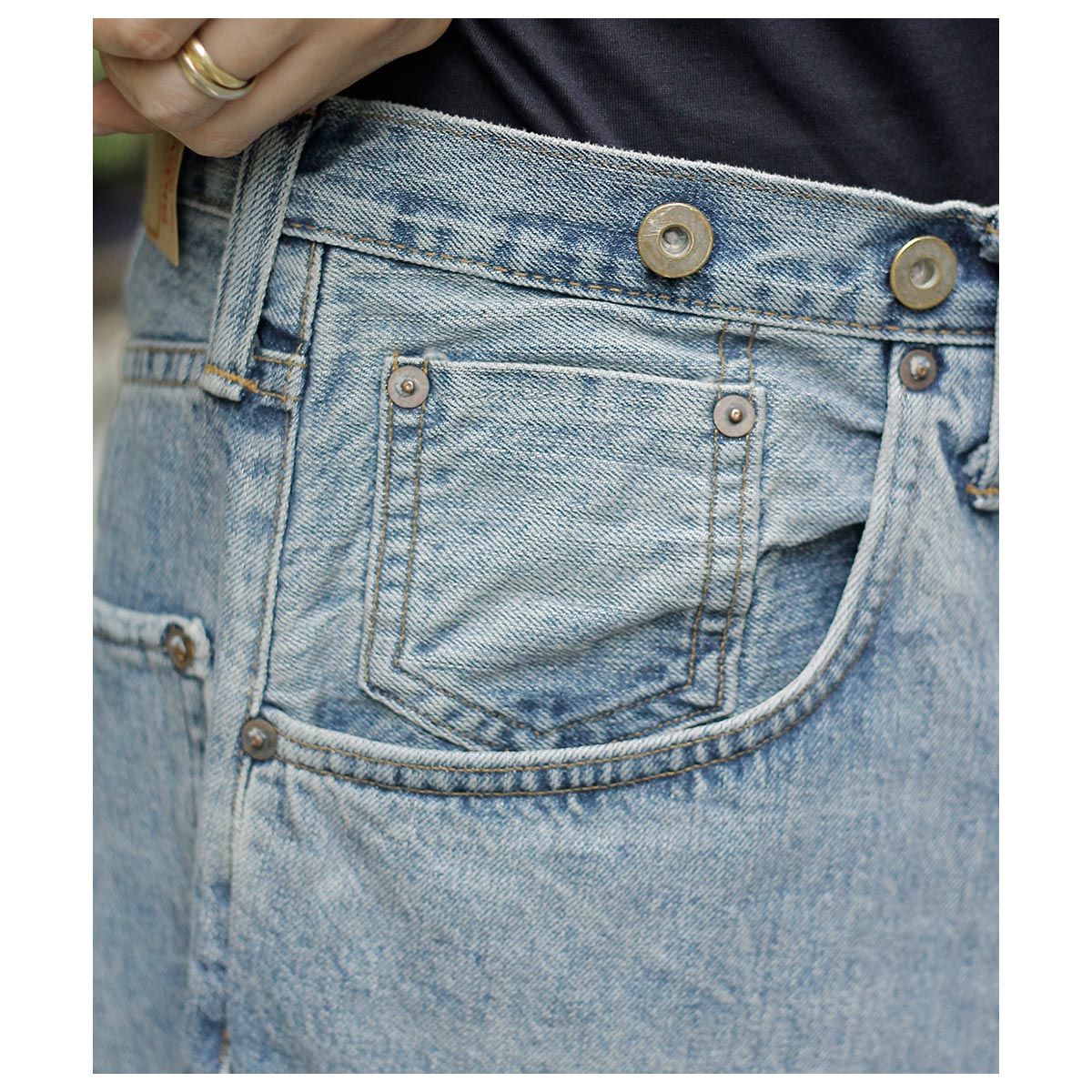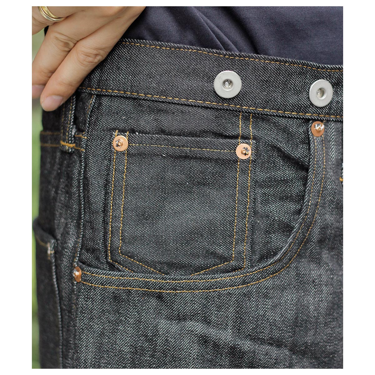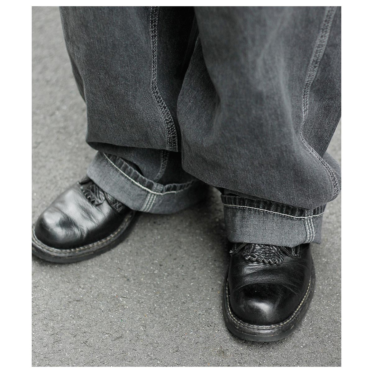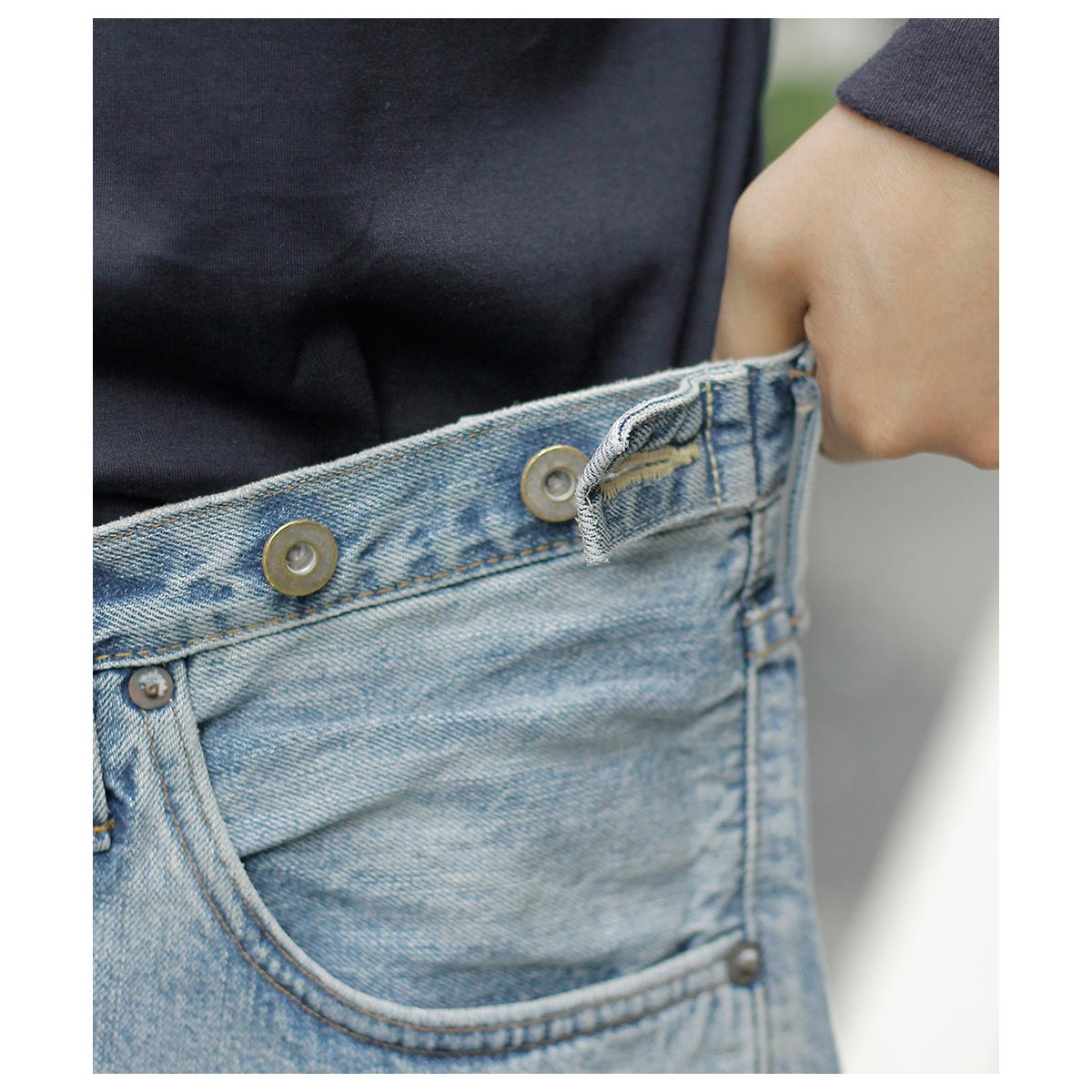 EDWIN「505」シリーズで使用のブラックデニムを採用。 ハリのある生地とブラックデニムらしい始まりの光沢感があり、インディゴとは違った締まりがあります。淡い色落ちが期待できます。