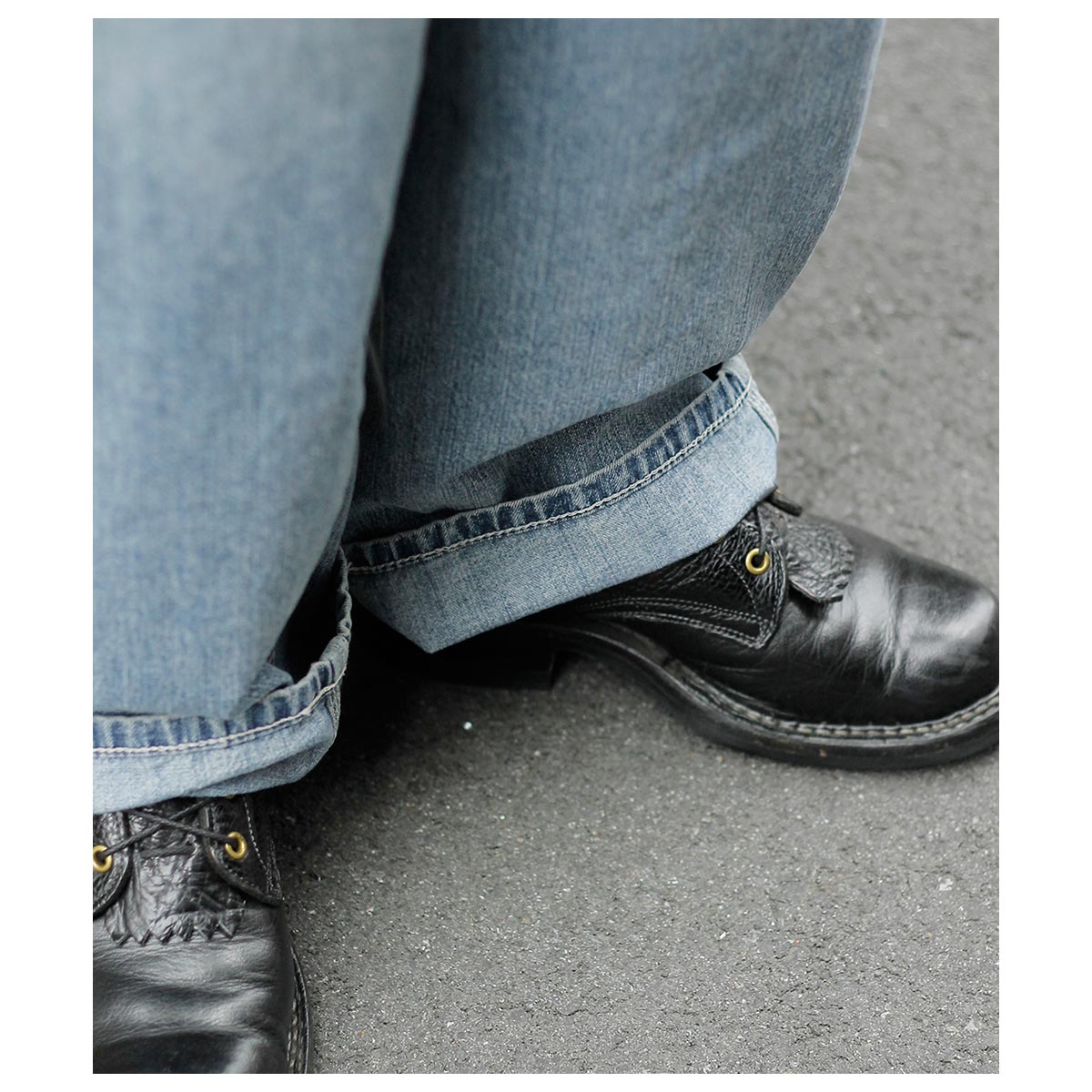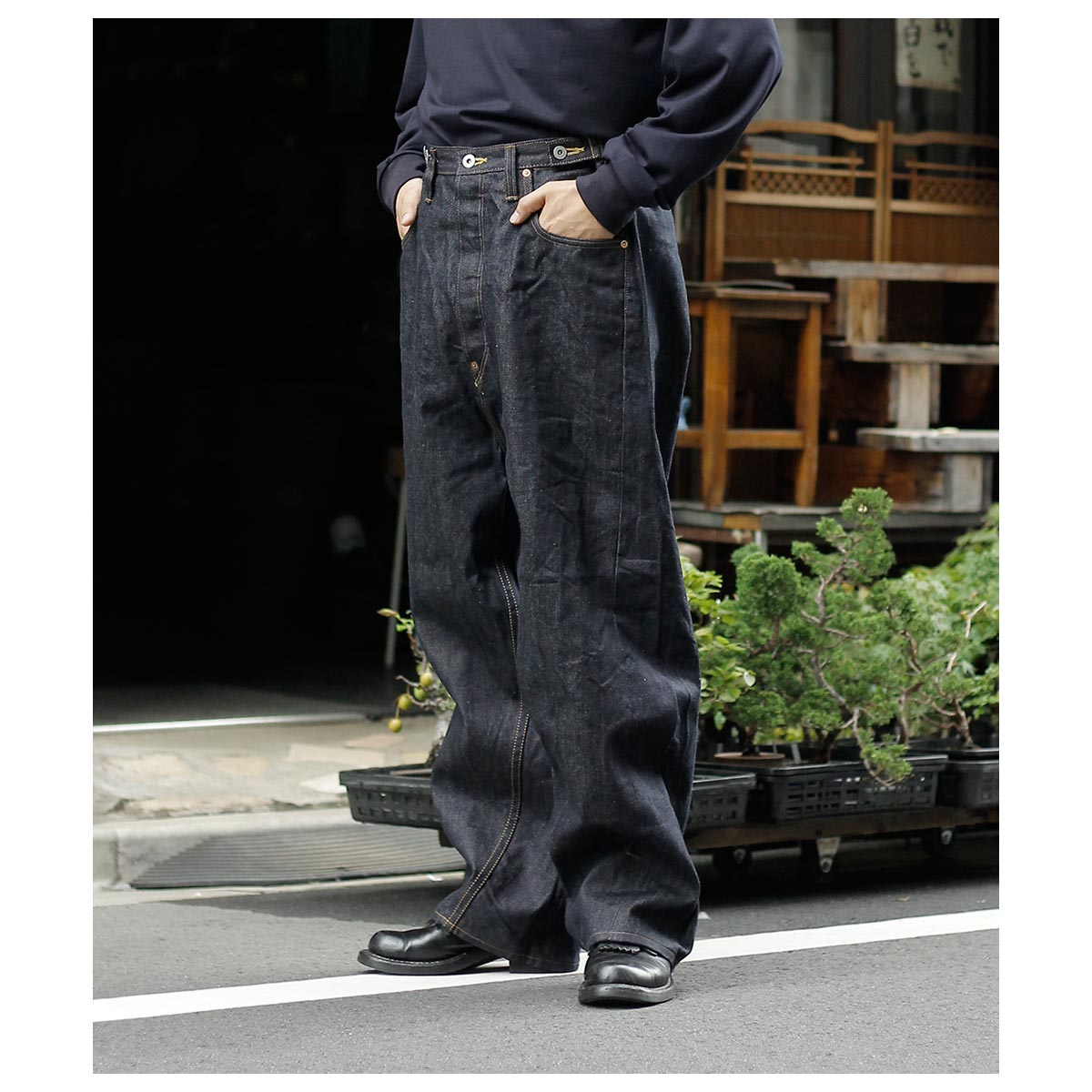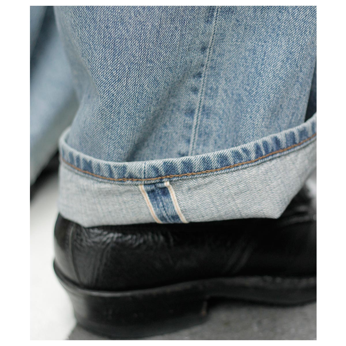 1971年の「13MWZ」をベースとしたモデル。 それまでの左綾デニムから「ブロークン・デニム」へと進化した際の 1stモデル。右綾や左綾に生じる「斜行/ネジレ」を解消するために 開発されたオリジナルファブリック。 COWBOY CUTと呼ばれる、ブーツの収まりが良いストレートなカットが特徴的です。