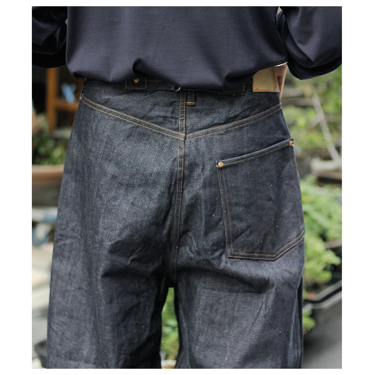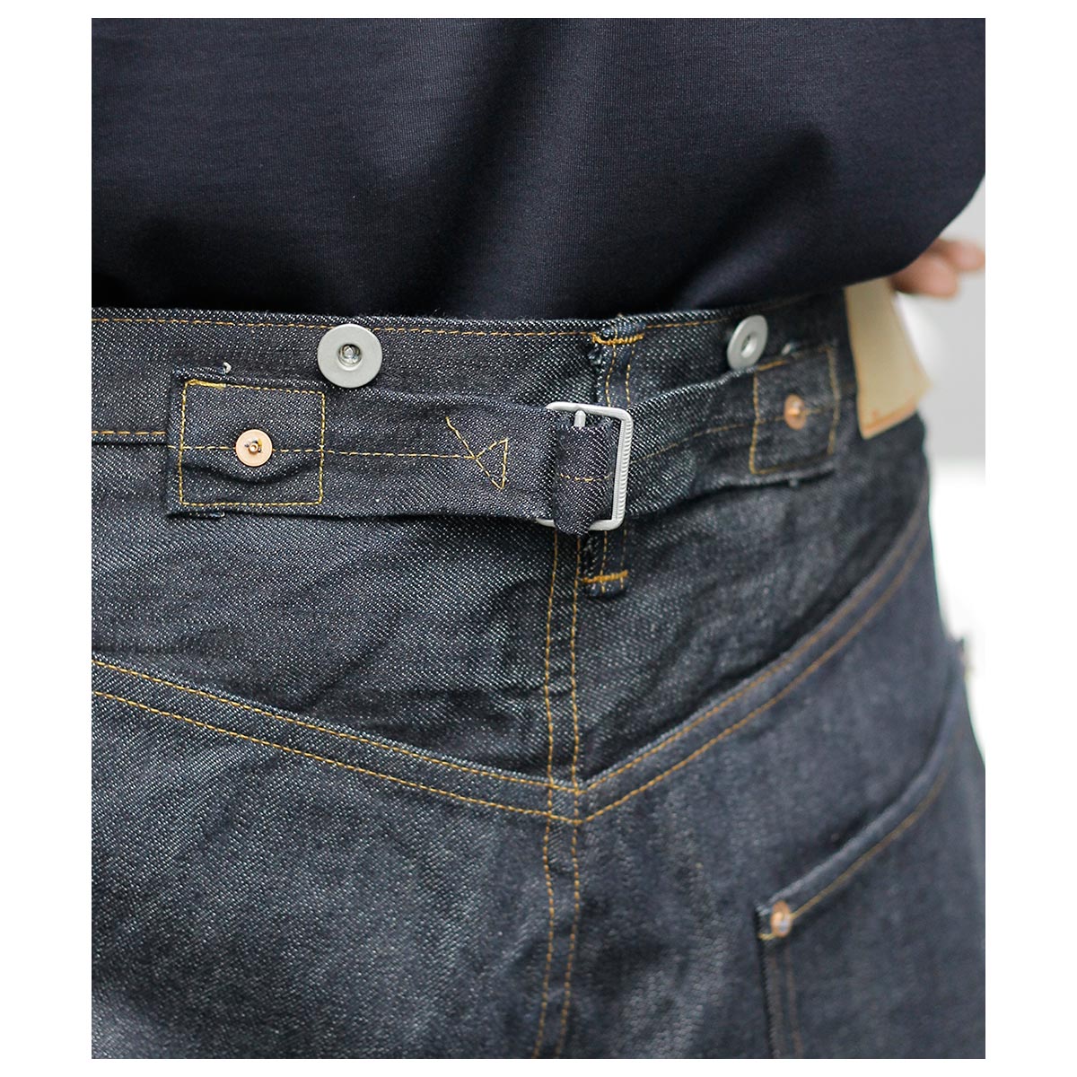 1900年初頭の「201」 One-POCKETをイメージしたモデル。シンチバック・ サスペンダーボタン付きの、Work Pantsとしての機能が色濃く残るモデル。 深めの股上、ボリュームのあるフィット、そしてSKEWedの象徴である右綾方向へのネジレが特徴です。