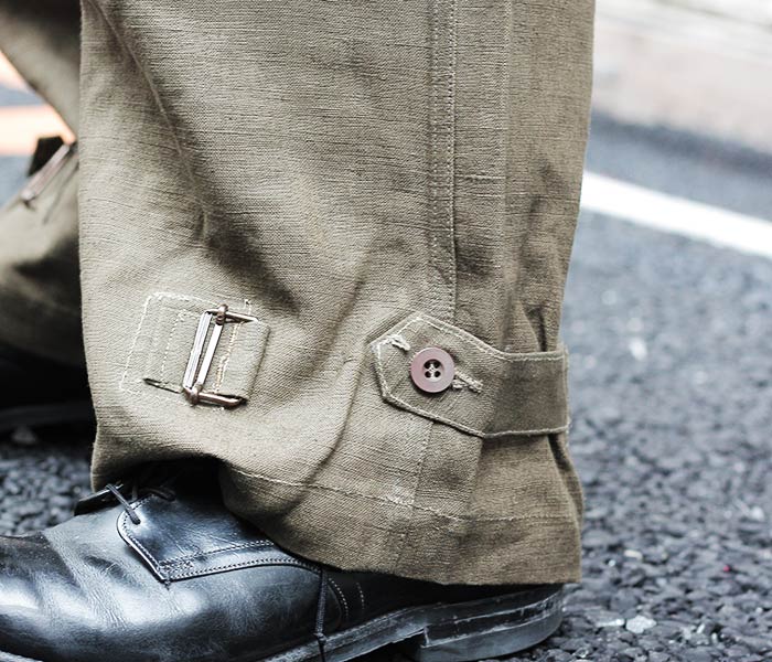 その名の通り40~50年代のフランス軍で、バイクに乗る際に着用されていたパンツ。