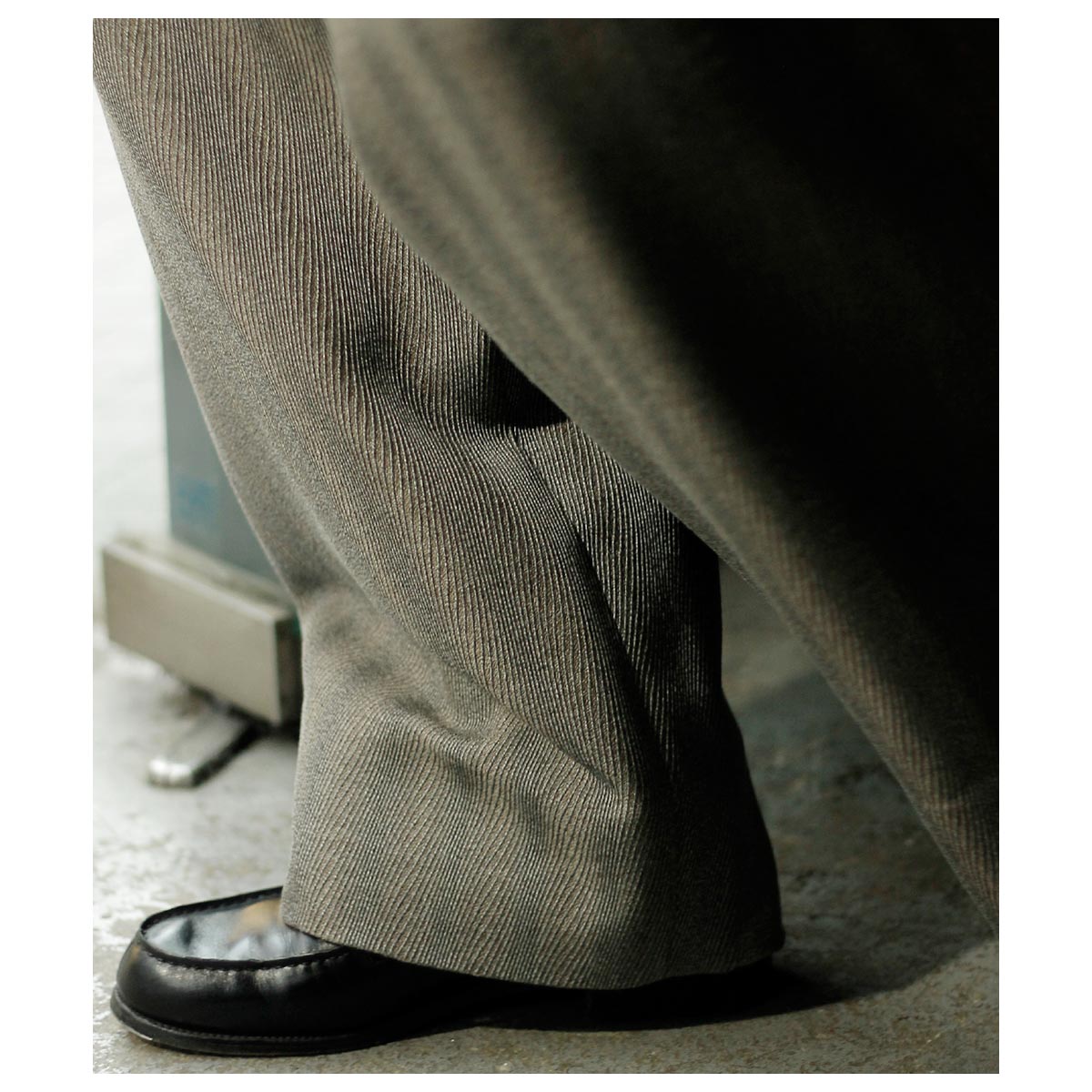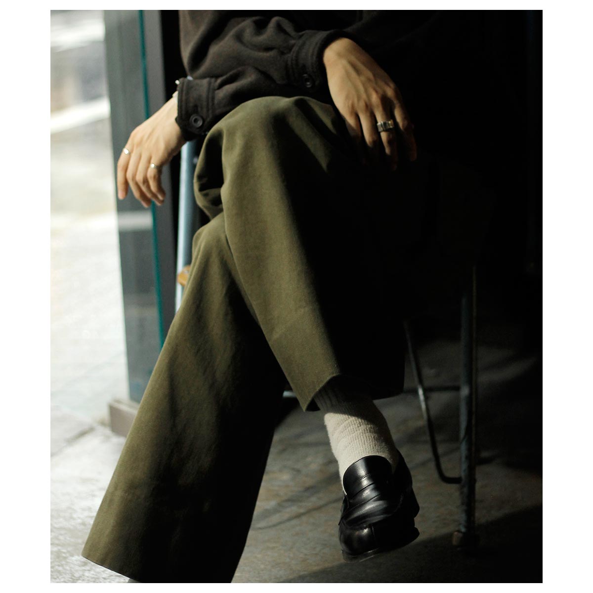 独特な表情と、ウール特有の鈍い光沢感によって一気にラグジュアリーな雰囲気に。