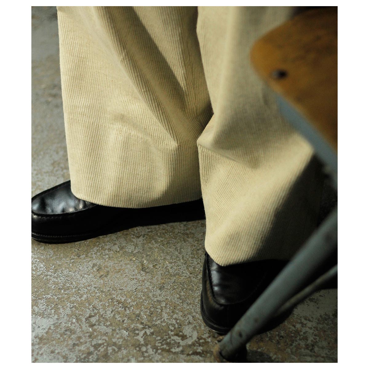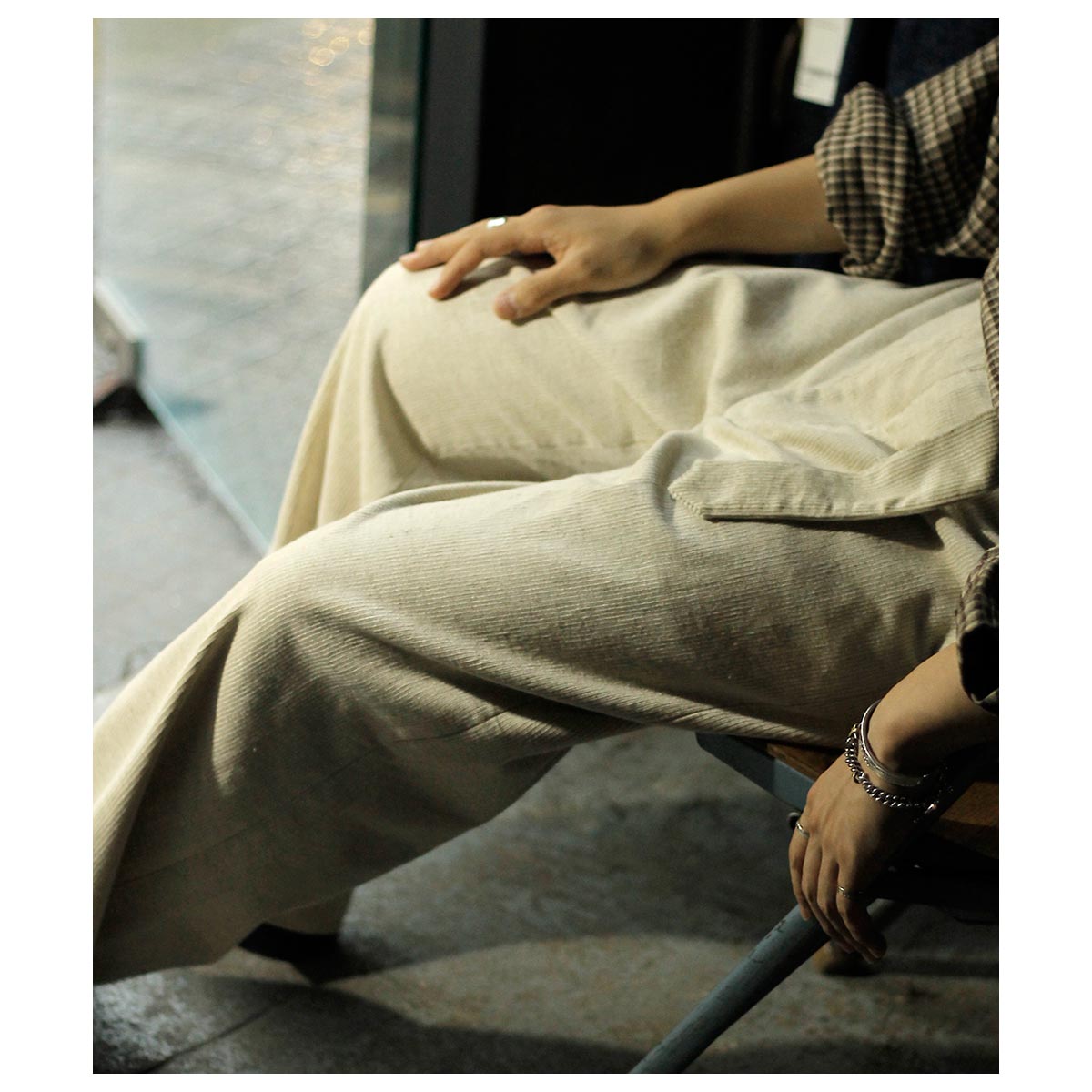 均質な経糸でしっかりと目面を揃えながら、緯糸のリネンによってほどよくランダムな表情を引き出しており、コットンのみのコーデュロイと違った風合いを楽しめます。