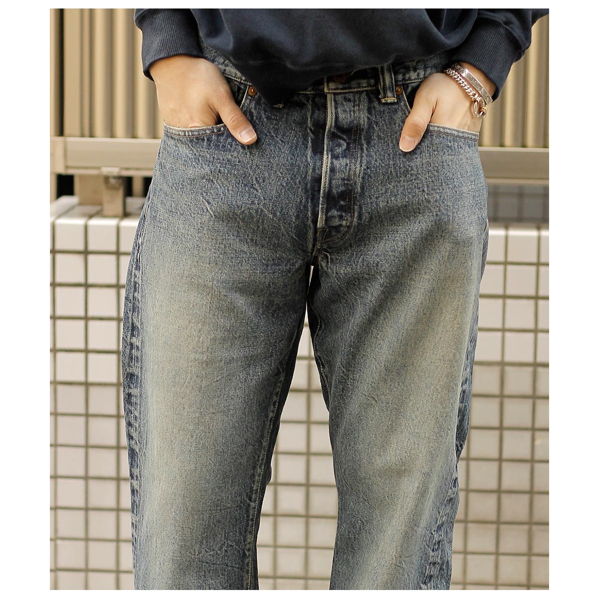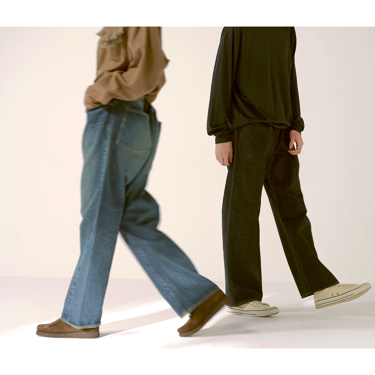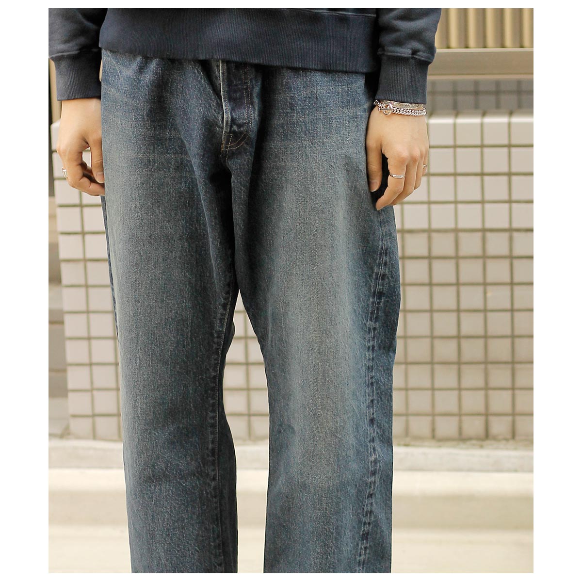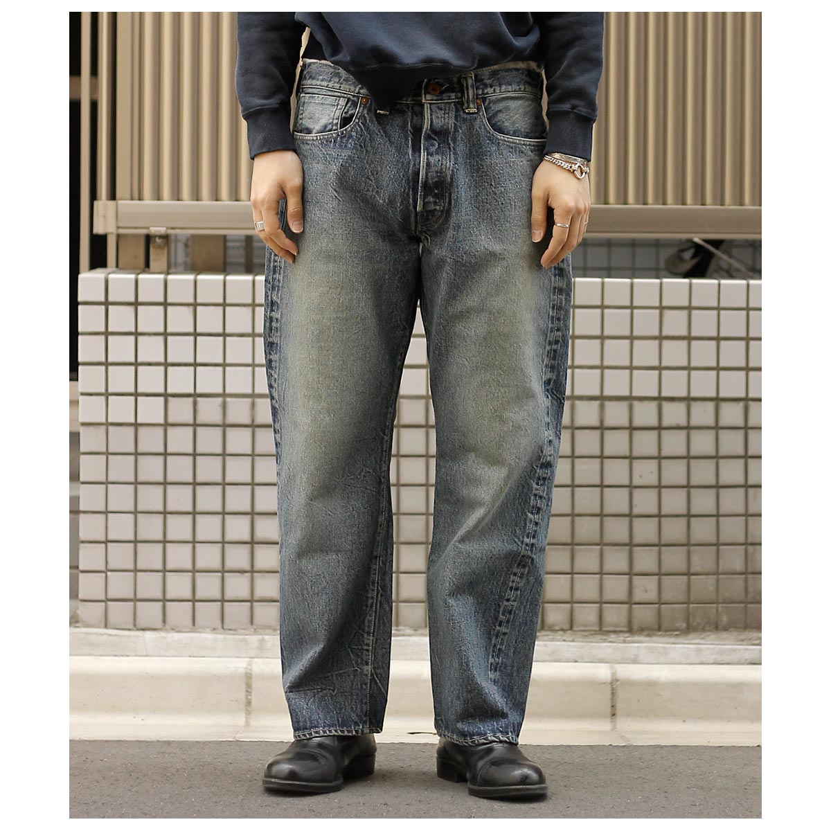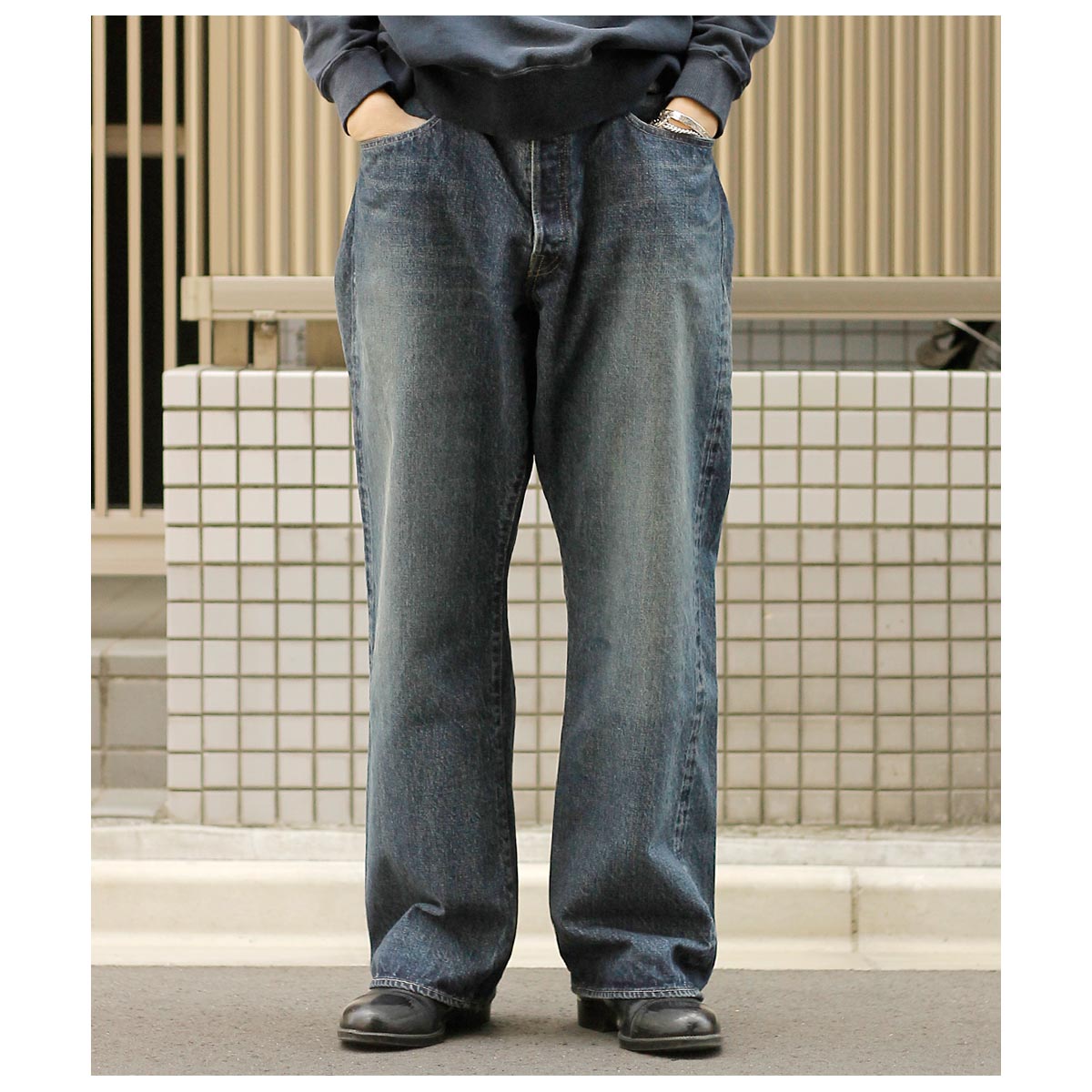 ヴィンテージの名作・大戦ジーンズをモチーフ に、ハイパービッグサイズで再構築した?本。大戦モデルのフォルムを踏襲しつつ、ウエストはベルトで絞る前提のワイドシルエットに。丈はロールアップや裾上げを想定した長めの設定。体型を 問わず、たっぷりとしたシルエットで着用できるデザインです。