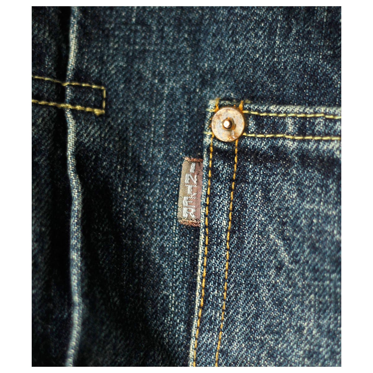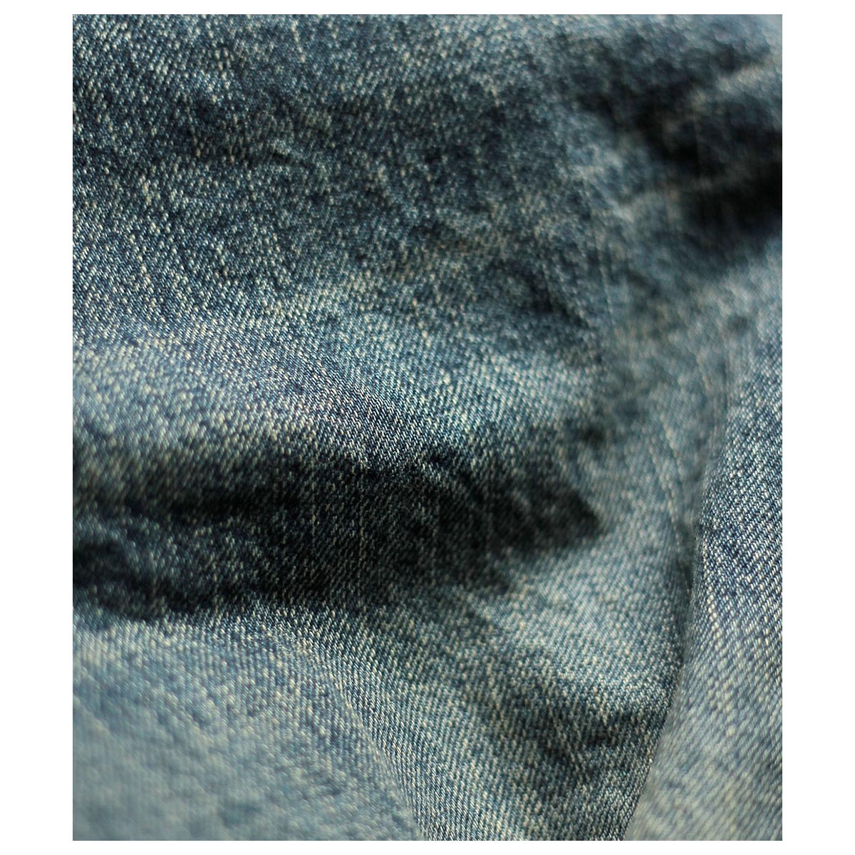 国内老舗機屋の中で約40年の間作られ続けてき た、約15ozのヘビーオンス生機デニム。経糸は緩めのテンションに、一方緯糸を革新機では織ることができないほどの高密度にすることで、凹凸感のある風合いを表現しています。