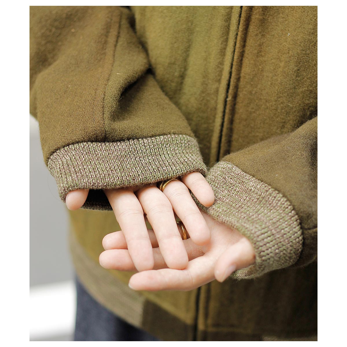 野暮ったく、重厚感のあるメルトン素材にクリーンなBBジャケットを組み合わせた