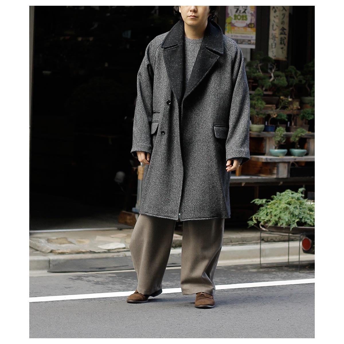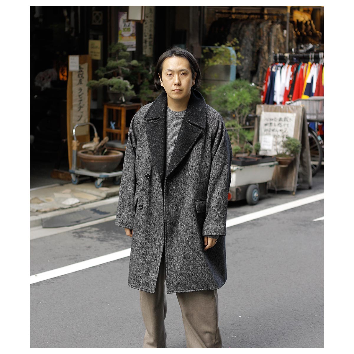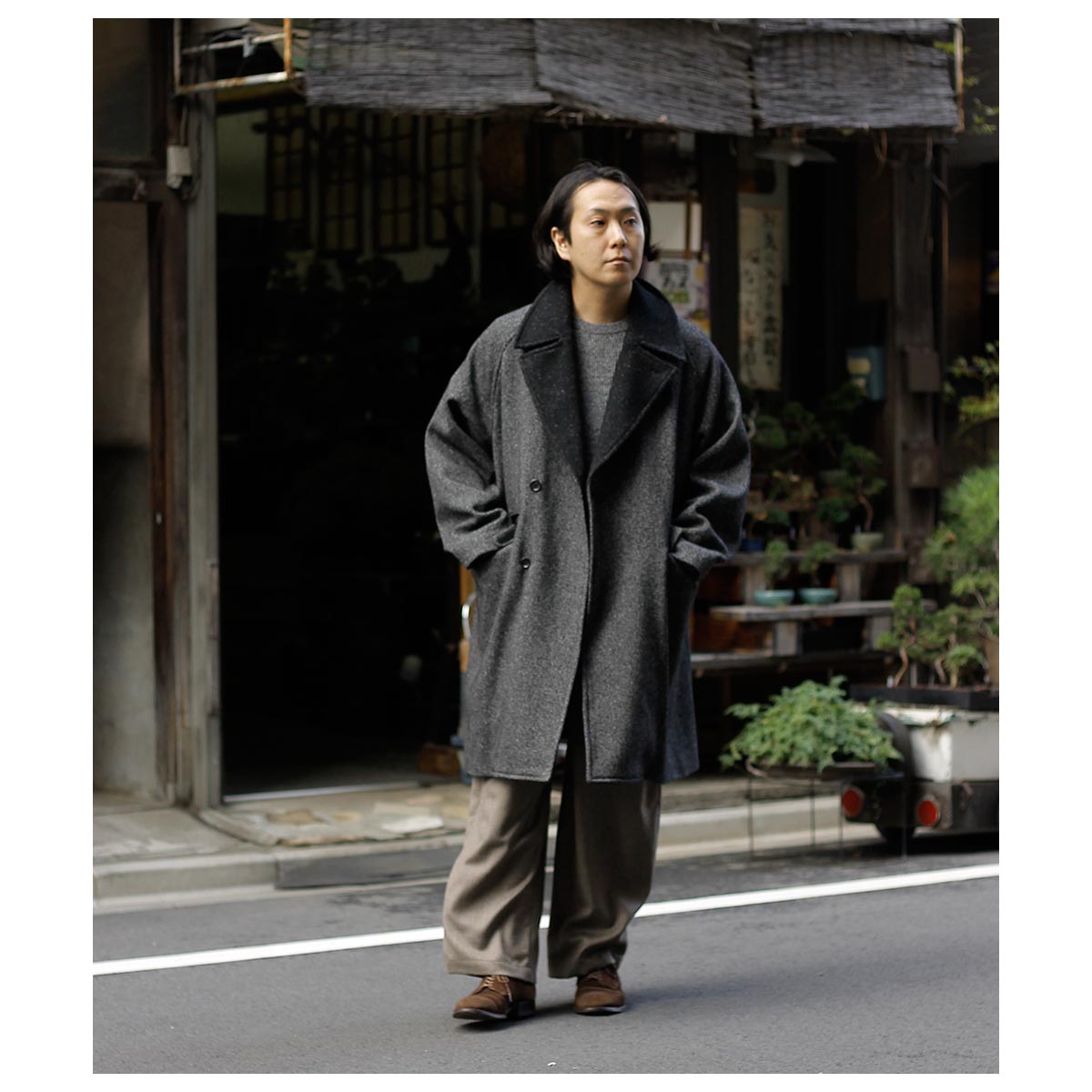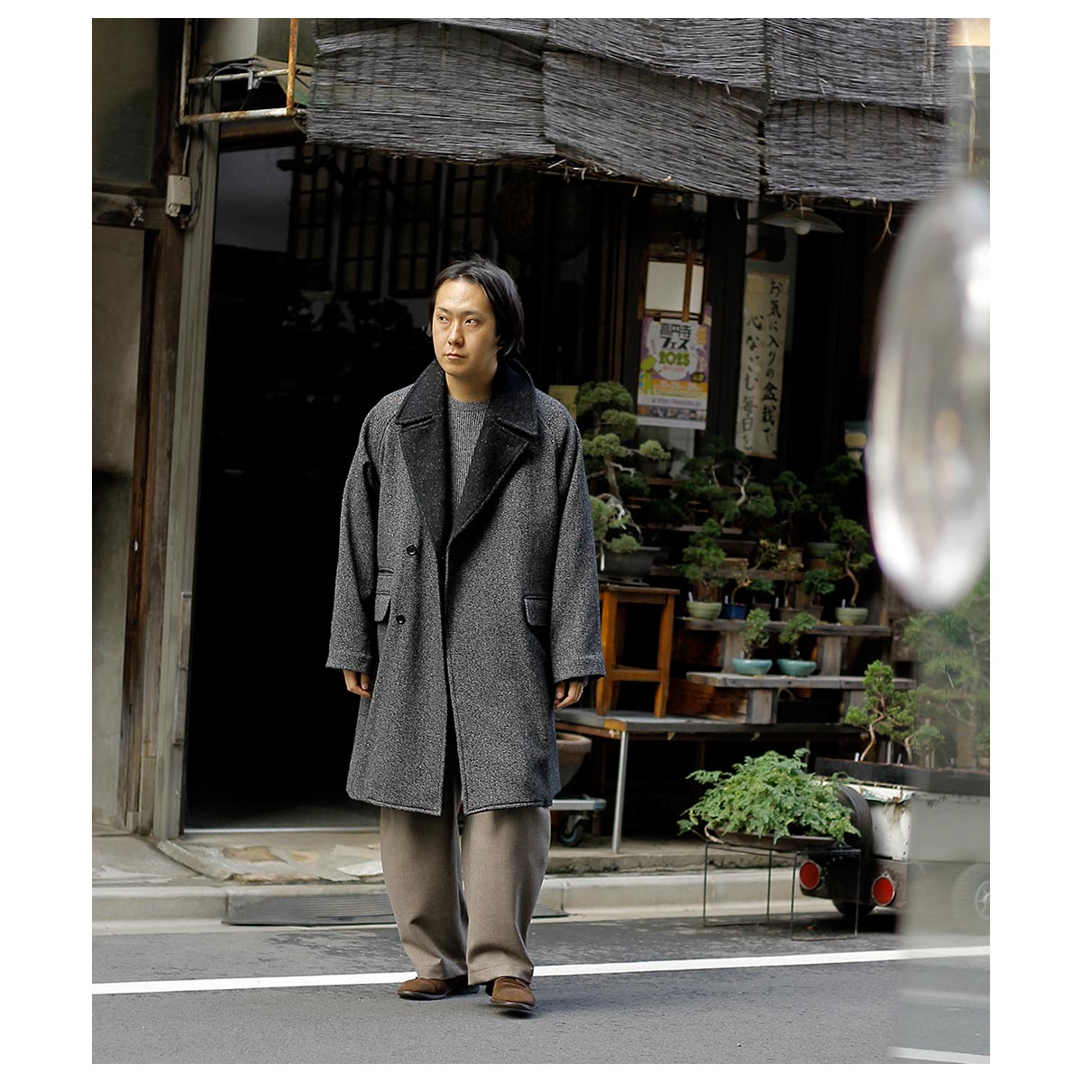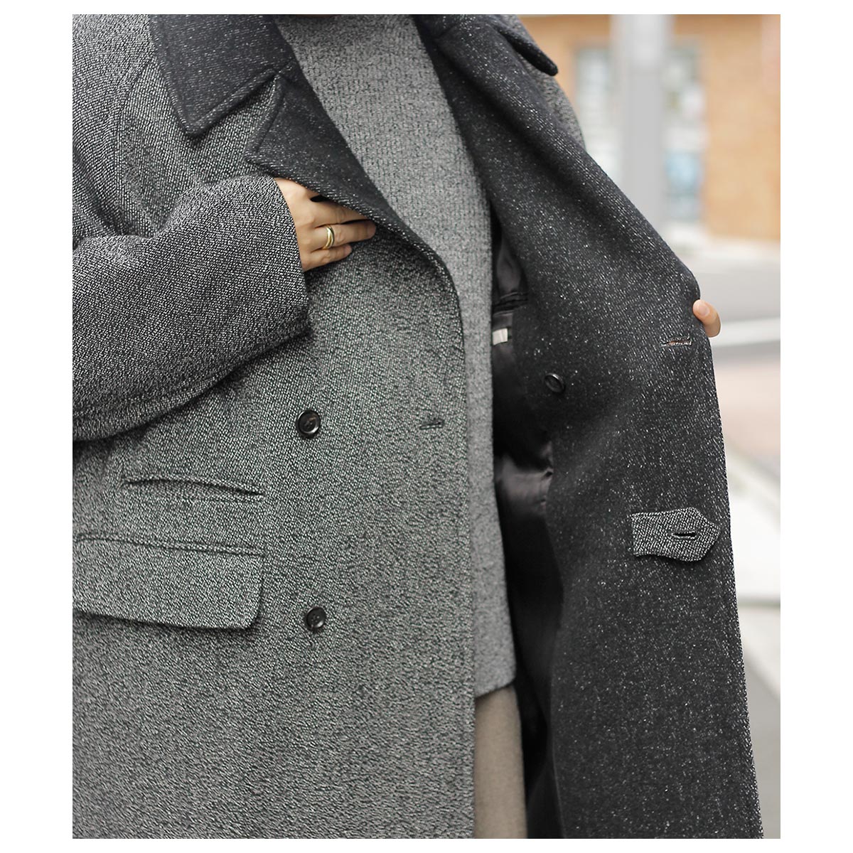 クラシックなオーバーコートをモダンですっきりしたバランスで仕上げたダブルブレステッドコート。