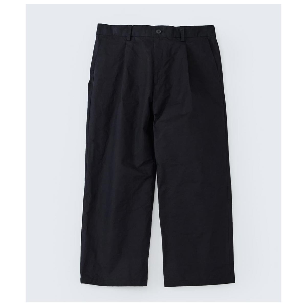 新型のストレートパンツはタック仕様で上品な印象に仕上げました。装飾を極力そぎ落とし、裾に溜まりが出ないようレングスを丁寧に調整しています。革靴、スニーカー、サンダルなど、足元を選ばず合わせられるリラックスシルエットが特徴です。YKKジッパーと本水牛ボタンを採用し、見えない部分の上質さも大切にしています。