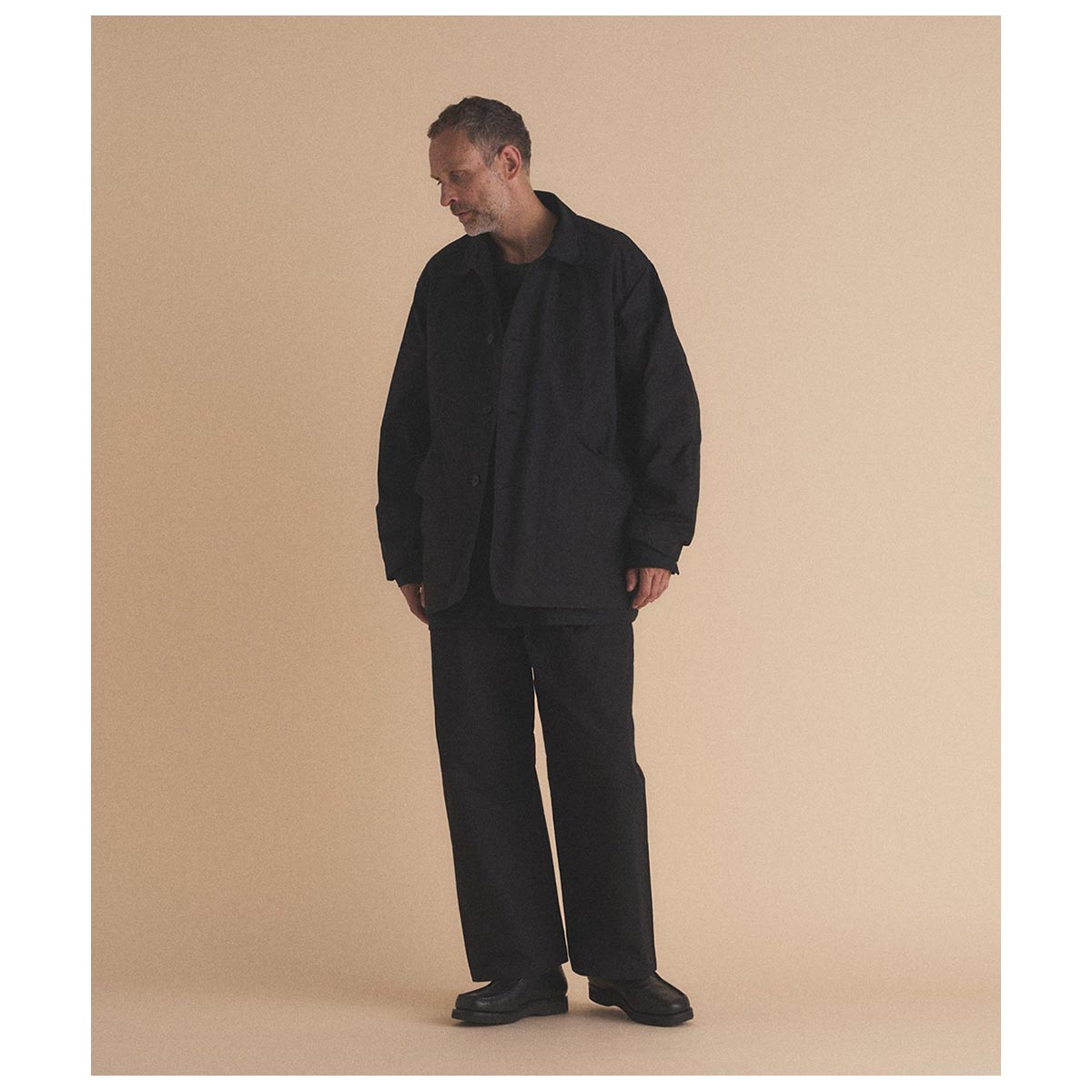 デザイン面では、アメリカの伝統的なアウトドアフィールドコートをベースに、襟の形状、ポケットサイズ、腕周り、全体のシルエットに至るまで、すべてのパターンをゼロから再構築しました。ハーフコート丈のバランスで、シャツやニットの上から軽く羽織るだけで様になり、日常使いにも適した一着に仕上げています。両胸の見返しには、それぞれ内ポケットを配置し、実用性も兼備。ボタンには艶を抑えた本水牛ボタンを採用し、使い込むほどに自然な光沢が生まれます。