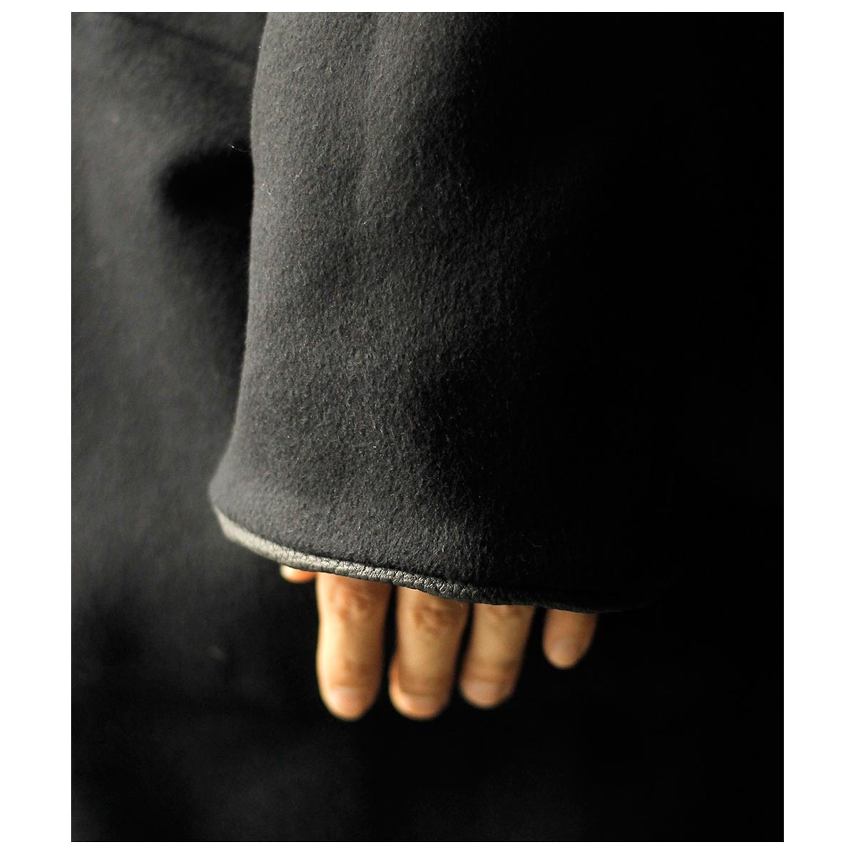 史上最もエレガントなアメリカ海軍メルトンを目指し、辿り着いたのがこのスーパ-160’SウールxカシミアxビキューナのMIX。高級獣毛だけではキューティクルが足らず糸が絡まないのでコシの強さが出ず、マニッシュなアウターとしては優しすぎる顔になってしまう。そこでスーパー原料としては最高位の160’Sにカシミアと幻のヴィキューナのミックスにより適度な縮絨感と光沢、しっとりとしたぬめり感の表現に成功しました。 ヴィキューナの毛はかつて単独で輸入した紡績がワタの状態で保管していたデットストックで濡れたような質感に貢献しています。